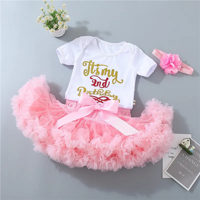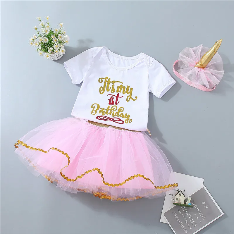 Комплект одежды для маленьких девочек на день рождения, комплект из 3 предметов, одежда на первый день рождения боди, топ, юбка-пачка, комплекты с повязкой на голову