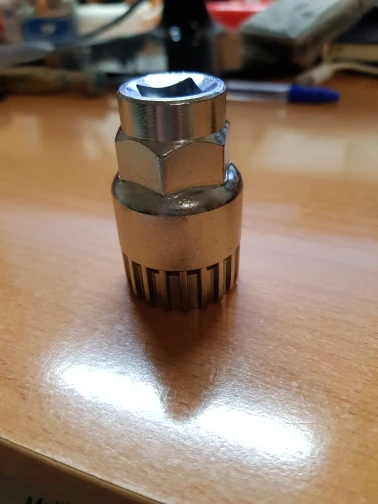 Доставка быстрая. Инструмент как есть неплох, сталь отличная, не мнется. В местных магазинах почти в 2 раза дороже. Сразу доработал, чтобы в будущем не иметь проблем со срывом шлиц. Срезал закругленный торец примерно на 3 мм, и отрезал выступающую круглую часть под внутренний вороток до основания внешней "гайки", теперь при установке по длине как раз хватает родного болта от шатуна чтобы притянуть инструмент к каретке. Срывается тем что под руку попадется, разводной ключ, газовый, рожковый на 24 с накинутой трубой или головку на 24 можно применить с мощным воротком. Главное - не надо искать длинный болт с очень сложной резьбой м8х1.