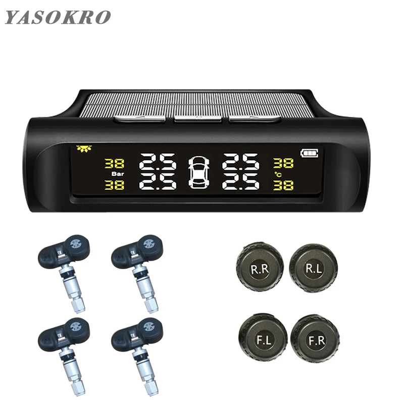 Система контроля давления в шинах YASOKRO, система контроля давления в шинах на солнечной батарее, ЖК-дисплей, 4 внешних датчика, датчик температуры