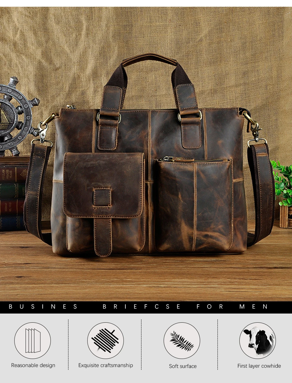 Мужской деловой чехол из качественной кожи в стиле ретро, чехол для ноутбука 15,6 дюйма, портфель-атташе, сумка на одно плечо, мессенджер, B260