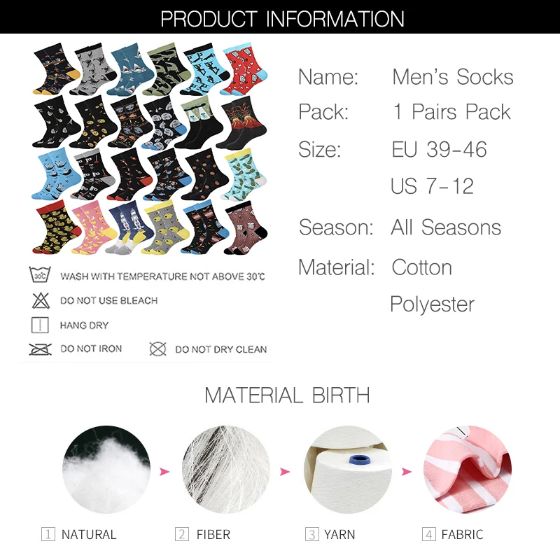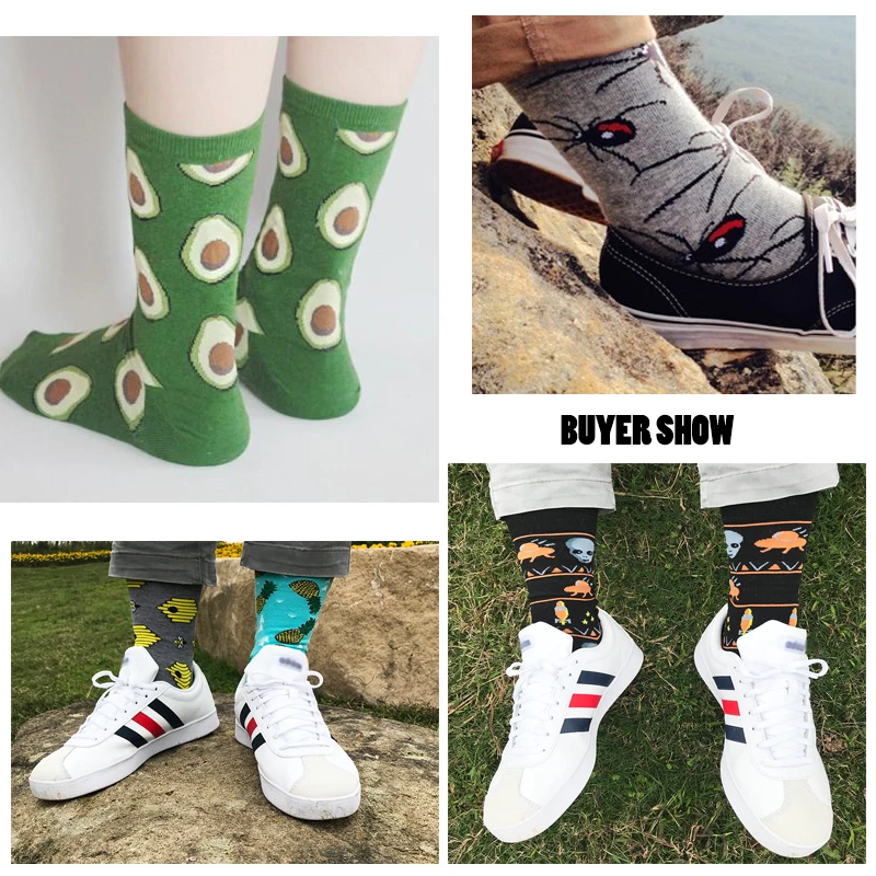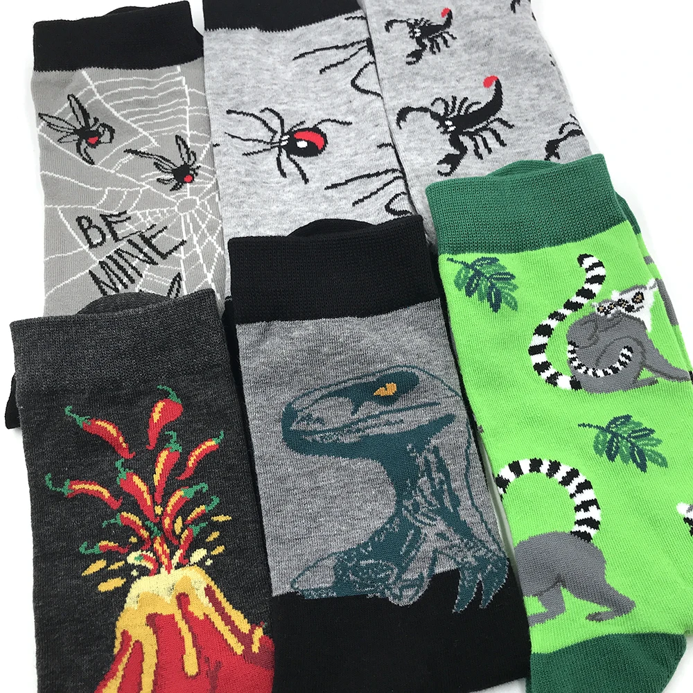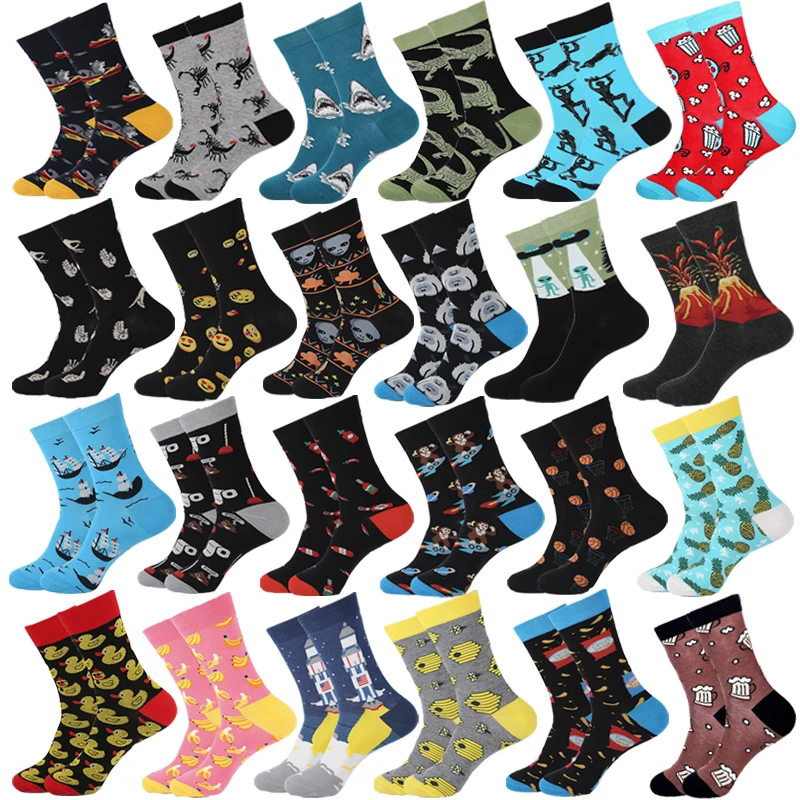 Носки мужские хлопковые в стиле Харадзюку, разноцветные Смешные в стиле хип-хоп, с принтом какашки, динозавра, суши, инопланетянина, авокадо, подарок на Рождество