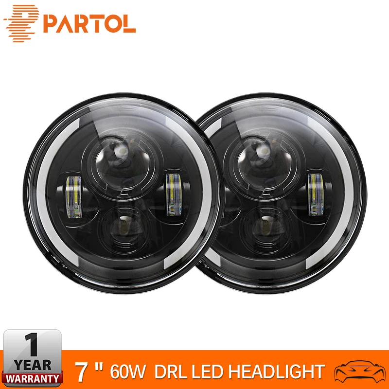 Светодиодная круглая фара s для Jeep CJWrangler JK, 7 дюймов, 60 Вт Светодиодный светильник дальнего света для Land Rover Defender H4 H13, ангельские глазки