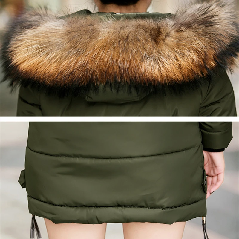 Зимняя куртка для женщин, Большая Меховая парка с капюшоном, длинное пальто, женское хлопковое стеганое зимнее пальто, женское теплое плотное пуховое пальто для женщин