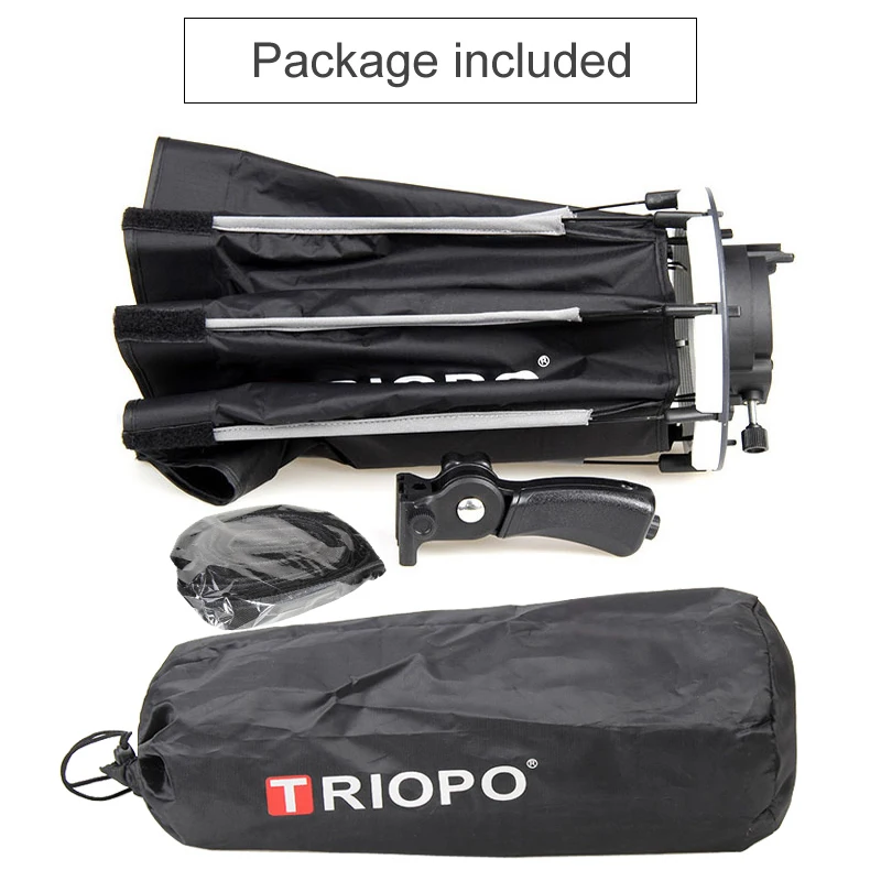 1. Внутри с отражающим серебром и поставляется с передним полупрозрачным диффузором, отлично подходит для speedlite, monolight, strobe или slave.