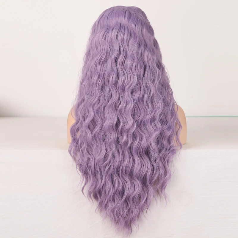 Парики из искусственных волос на кружевной передней основе, длинные волнистые парики 26 дюймов для чернокожих женщин, термостойкие волосы из фиолетового волокна, боковая часть парика