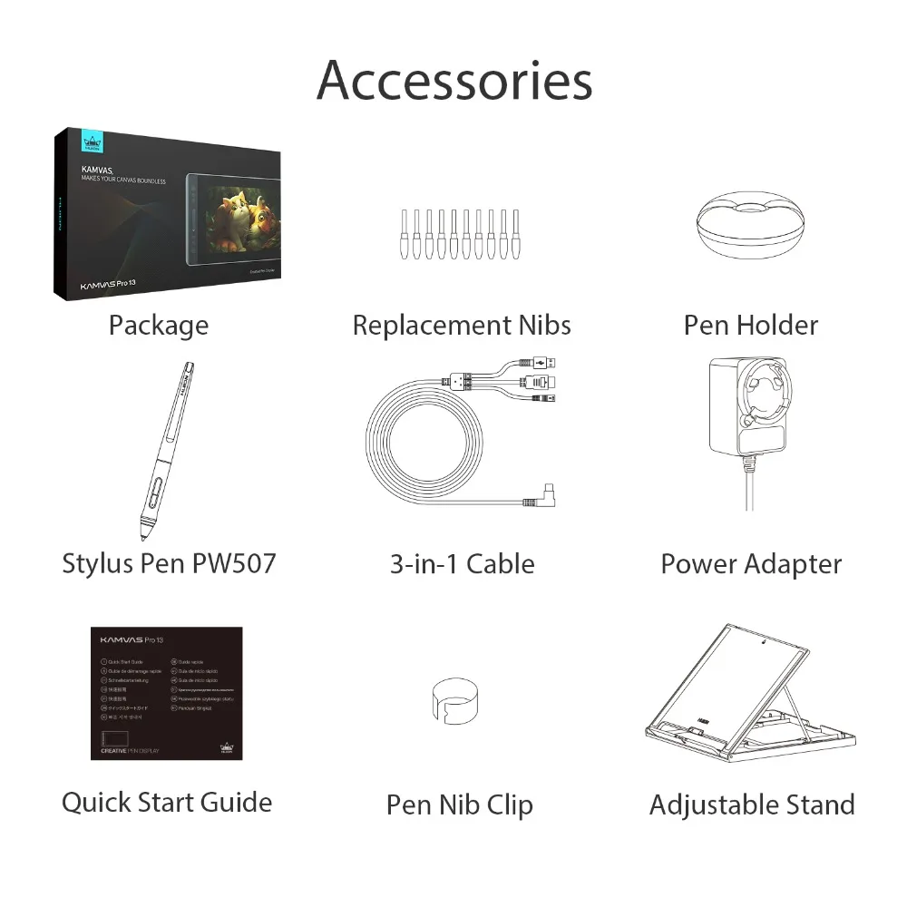Графический планшет HUION KAMVAS Pro для рисования, устройство для создания рисунков и набросков, 13 планшетов, с функцией наклона, не требующей батареек