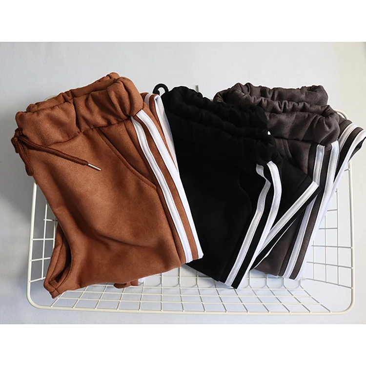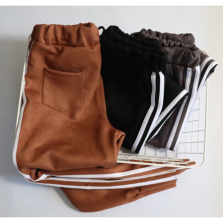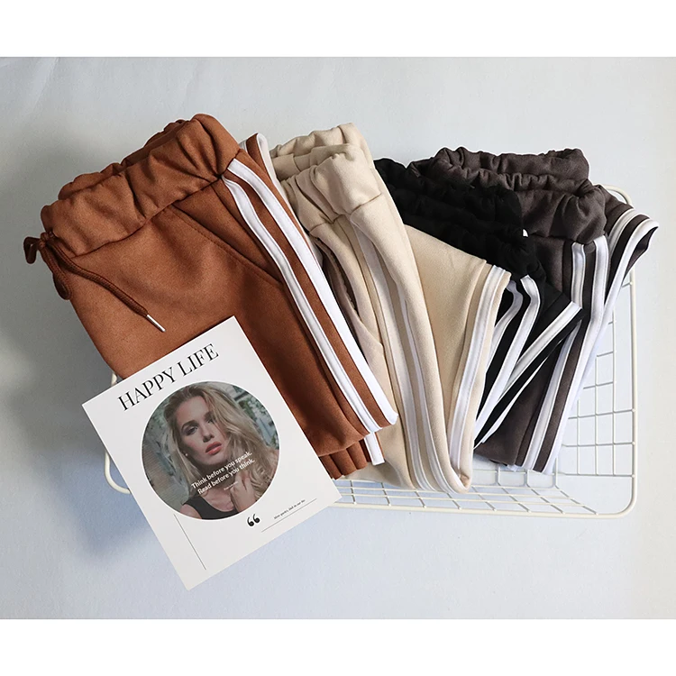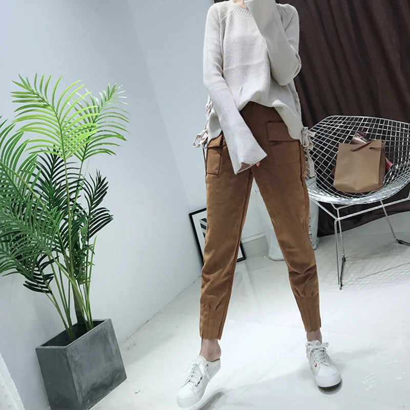 Женские брюки с высокой талией, повседневные замшевые шаровары, корейский стиль, эластичные, с карманами, Осень-зима, размера плюс