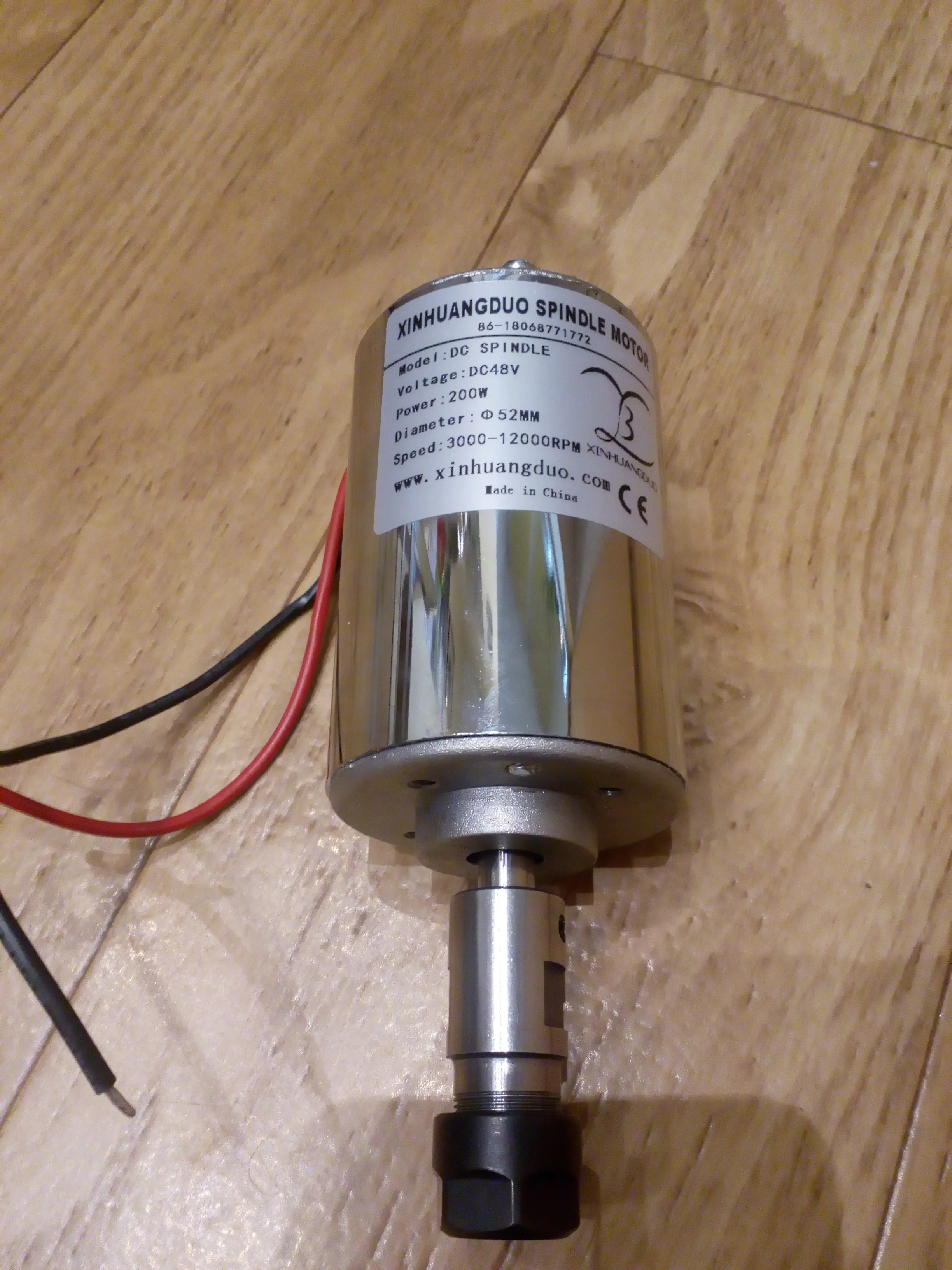 Качество супер! Описанию соответствует. Тяжелый, на 200 ватт весит 660 грамм. Вал 8 мм. С обеих сторон вала установлены подшипники. Патрон ER11 с цангой 1/8. Биений нет. При 24 вольтах на холостых оборотах потребление 400 мА. Провода 0,75 мм. Работает тихо, равномерно. Вибрации нет. Упакован был в картонную коробку. Продавца и товар рекомендую.