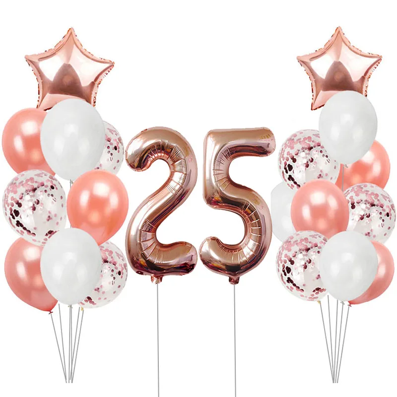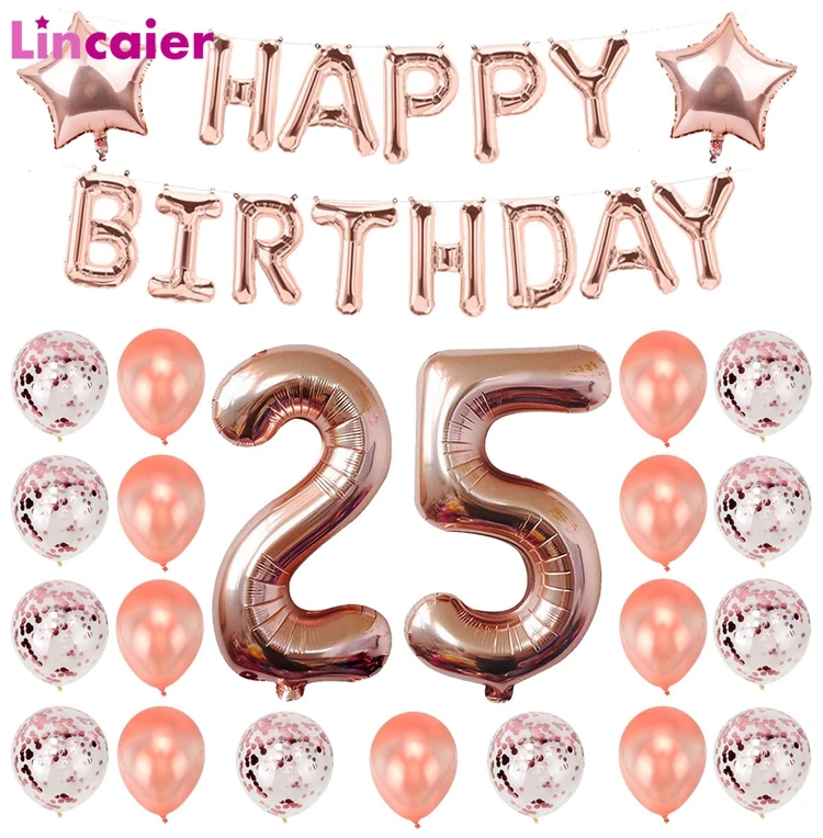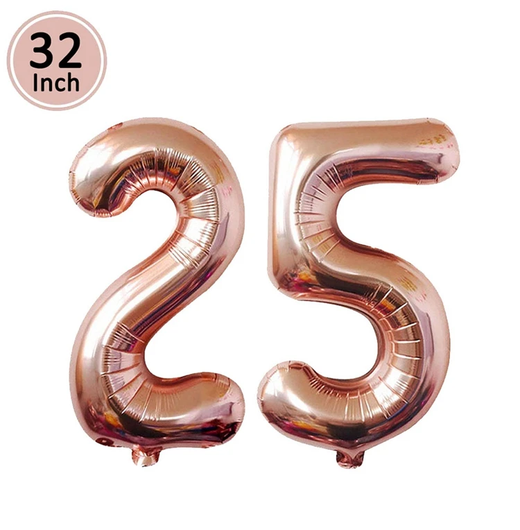 Воздушные шары с номером 25, украшение для дня рождения, 25 лет, розовое золото, мужчина, женщина, 52, 52, товары для дня рождения