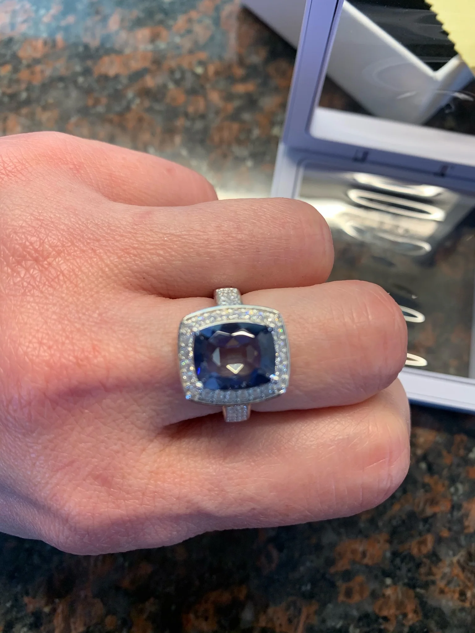 Восхитительный, шикарный , роскошный камень !!! Он как глубокое озеро, темно-голубой с синевой с переливами серого. Изделия прекрасного качества, как и все в этом магазине, это не первый мой заказ здесь. Брала весь комплект - кулон, серьги и кольцо, красота неописуемая !!! Все сверкает и переливается. Рекомендую, берите, не пожалеете. Продавцу браво и спасибо !!!