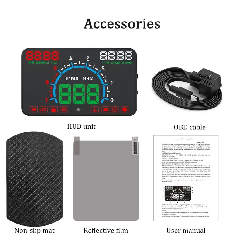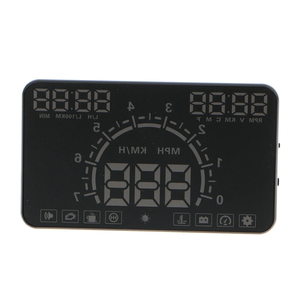 HUD короткий для дисплея головы вверх. Он отображает данные о вождении на лобовом стекле, такие как скорость, об/мин, расход топлива, температура воды, напряжение; Избегайте вождения становятся опасными из-за просмотра инструмента во время вождения.