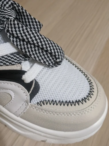 У меня длина стопы ровно 26 см, выбрала размер 9,5 потому что боялась, что будут маломерить. Но они полностью соответствуют таблице, главное смотрите на сантиметры, а не на размер. Мне немного велики оказались. Кроссовки, конечно, китайский Китай:) Не для спорта, а для красоты. Но выглядят достойно, сделаны вполне аккуратно. Бежевая часть из чего-то вроде эко-кожи, чёрная - резиновые вставки, на носке белая сетка, но под сеткой внутри ещё есть плотный материал.
