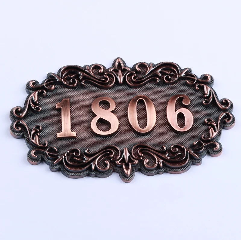 Наклейка на дверь с имитацией номера дома из АБС-пластика, Бронзовая Античная медь