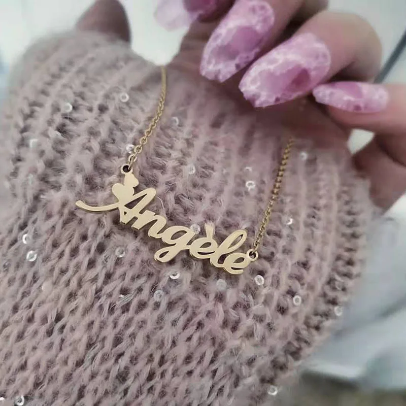 Ожерелье из нержавеющей стали кулон-табличка с именем, для женщин