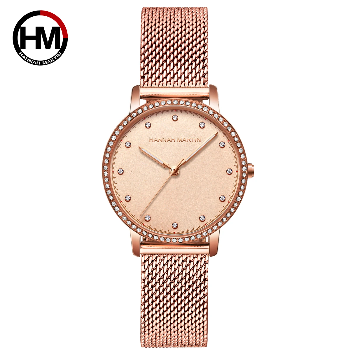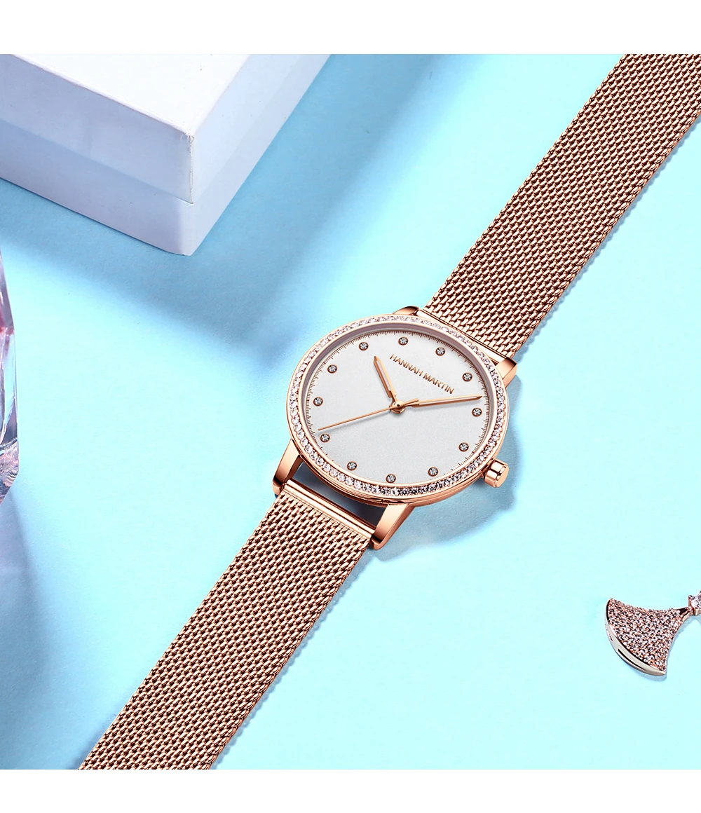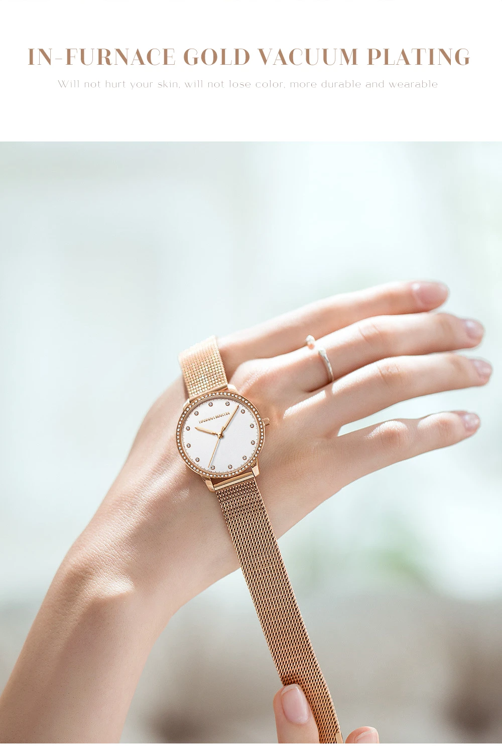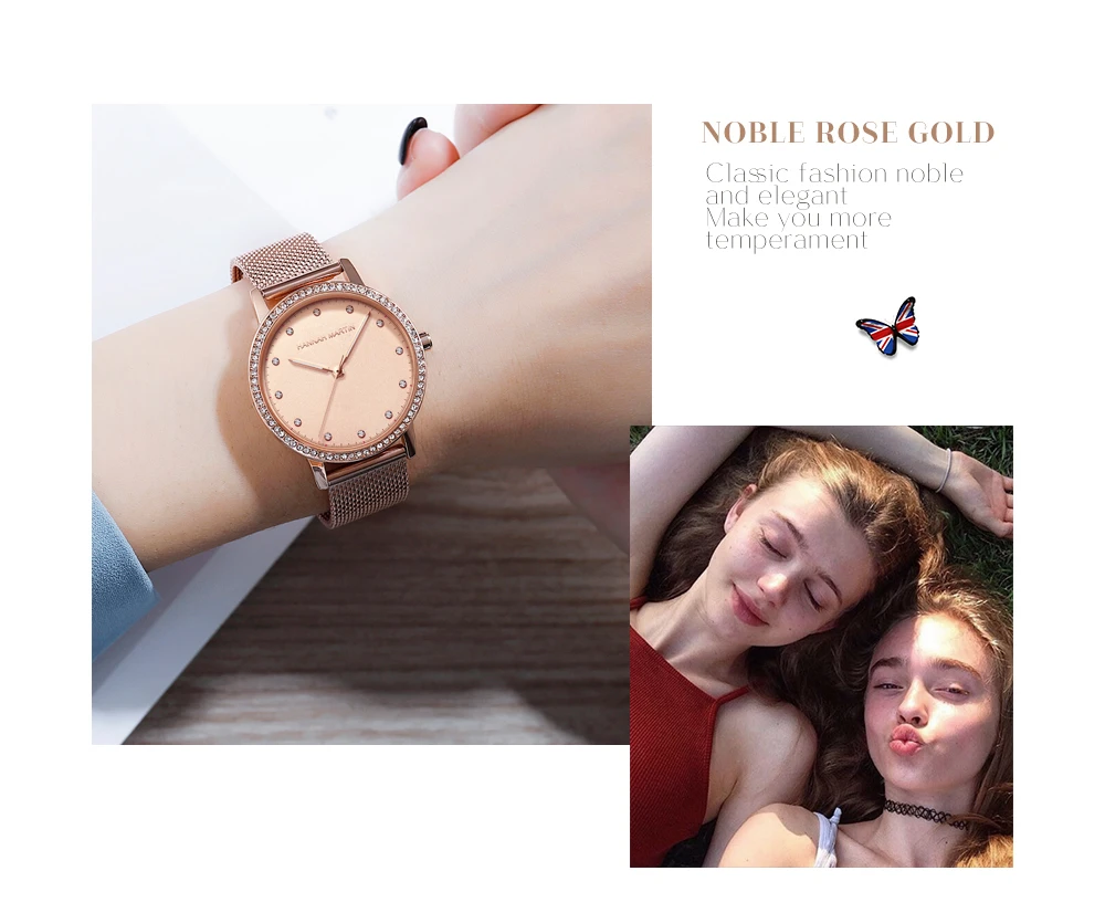 Женские наручные часы, кварцевые, с бриллиантами, розовое золото, водонепроницаемые