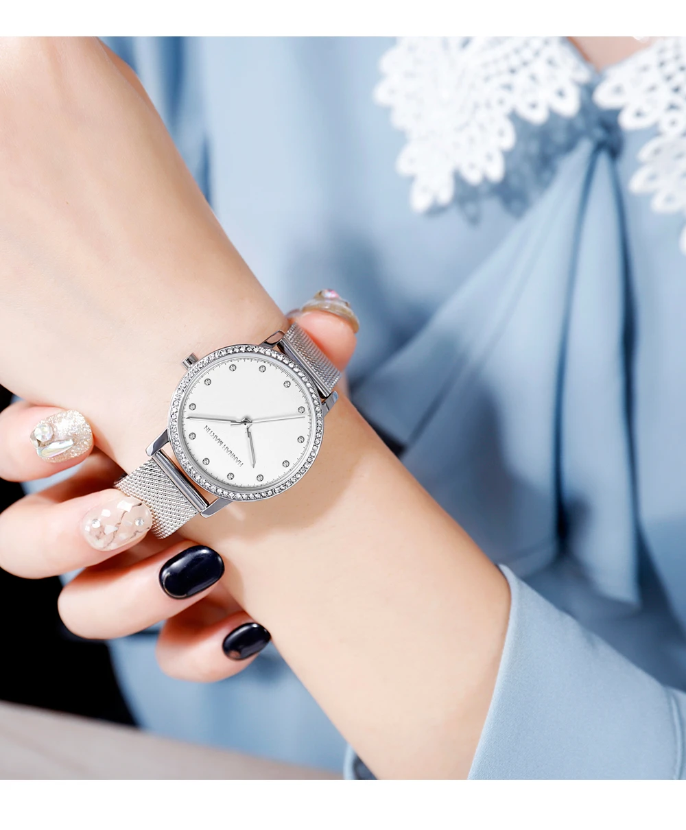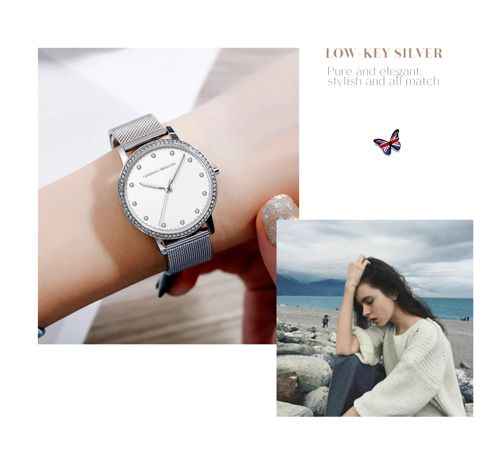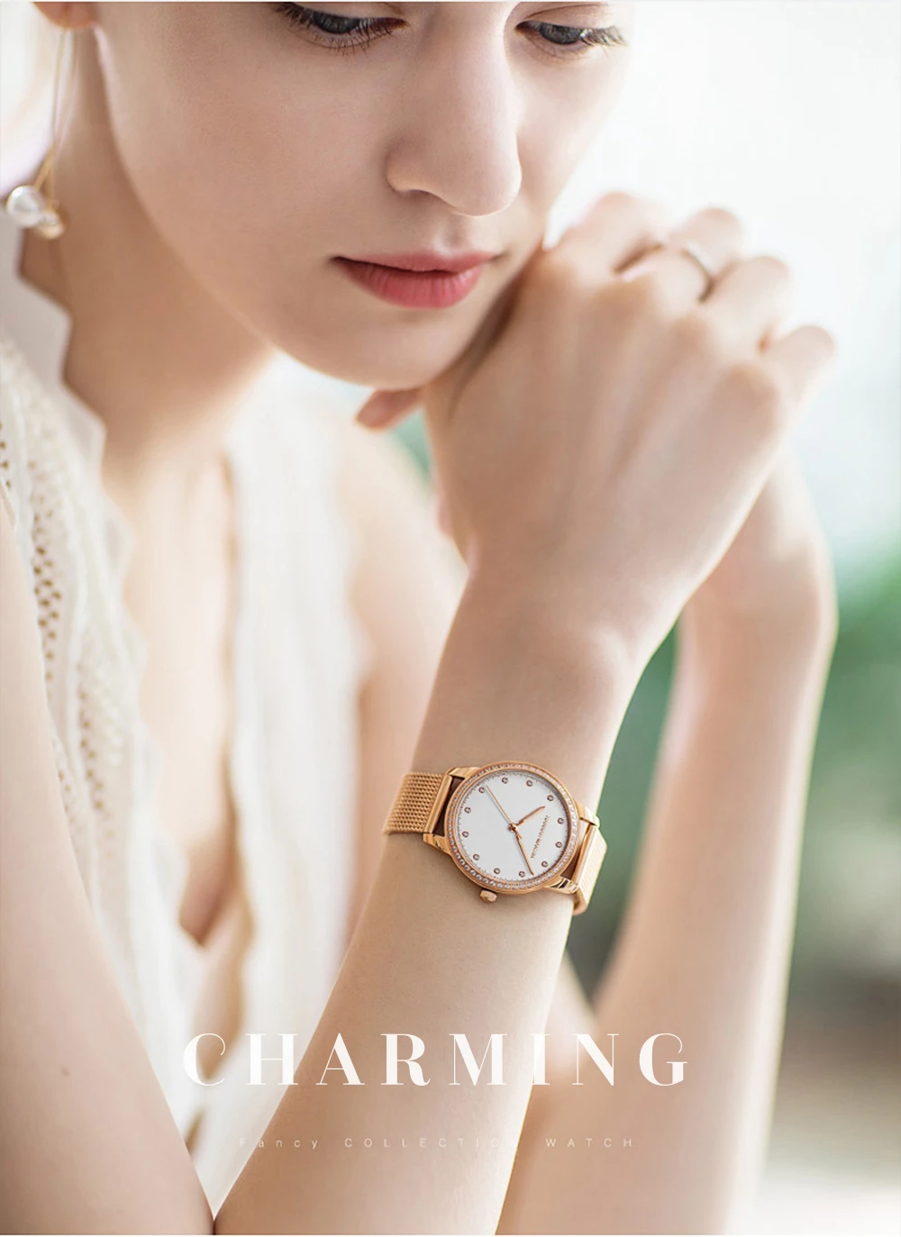 Женские наручные часы, кварцевые, с бриллиантами, розовое золото, водонепроницаемые