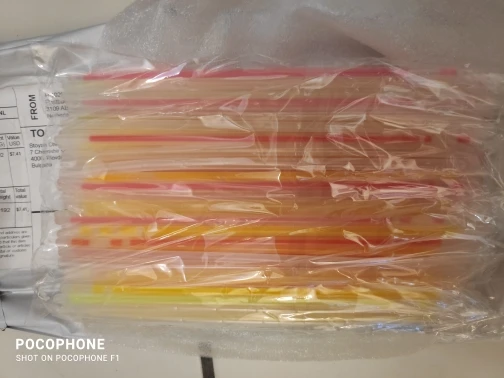 Заказываю здесь третий раз. Пришли все 100 палочек. Предыдущие раз палочки приходили в картонной тубе, в этот раз почему-то пришли без картонной тубы. Но упакованы были очень хорошо с использованием надувной упаковки. Ни одна палочка не повредилась. Отправили товар быстро, но шла посылка в Новосибирск 2 месяца (долго держали на границе).
