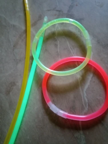 Палочки были упакованы очень хорошо-не кажется поврежденным. Они поставляются с соединительными соединениями для создания браслетов. Однако диаметр ручки небольшой, вероятно, больше подходит для детей.