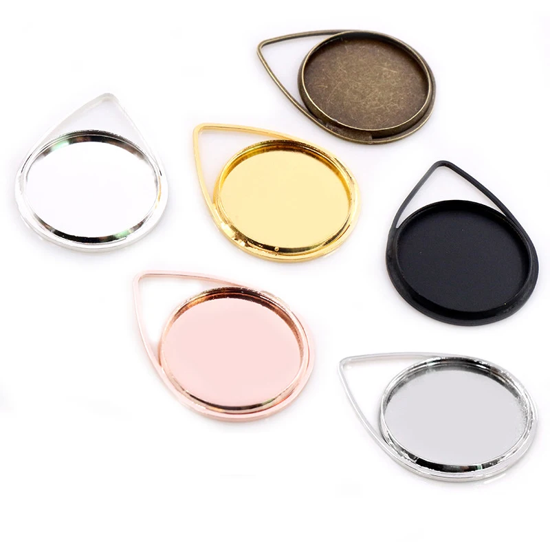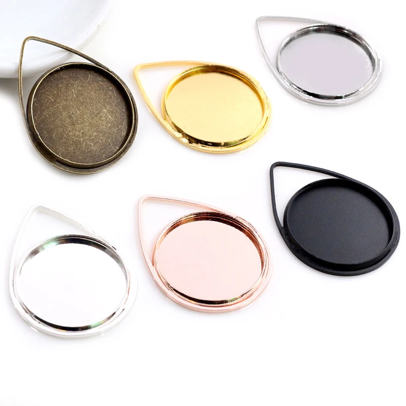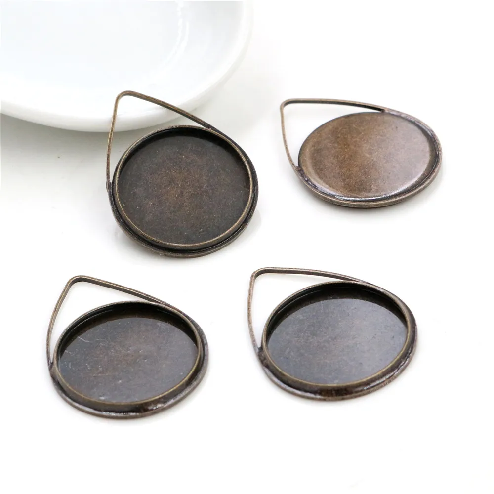 10 шт 20 мм Внутренний размер Посеребренная бронзовая черная позолота материал капля стиль ручной работы Кабошон базы камея база кулон