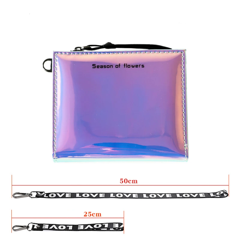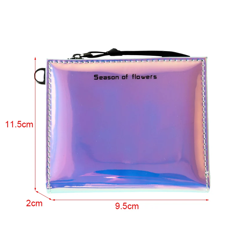 Кожаный короткий кошелек с блестящей краской, Женский голографическ...