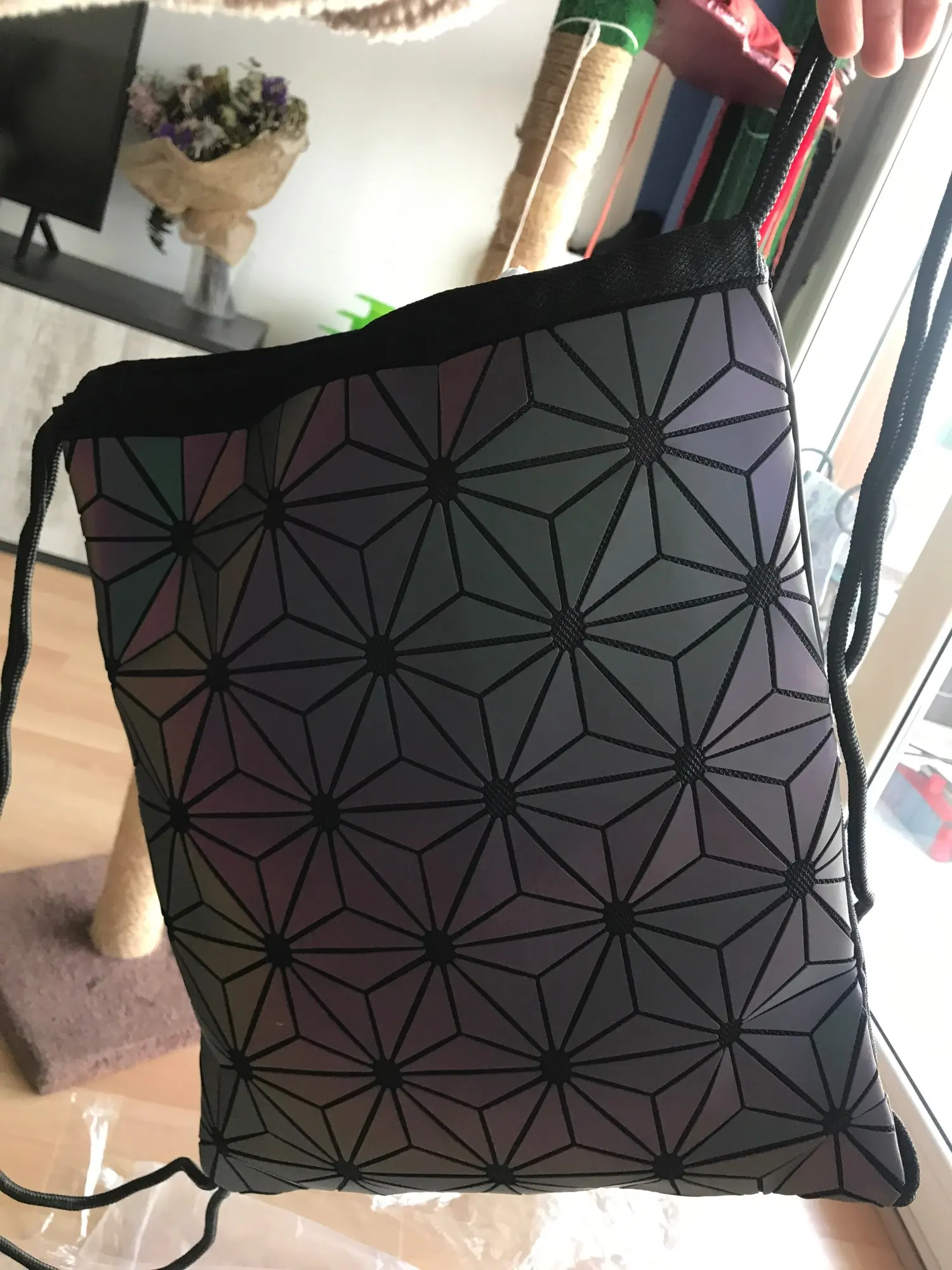 Рюкзак женский на шнурке с голографическим рисунком, светящийся школьный ранец с геометрическим узором для девочек-подростков, пляжная сумка