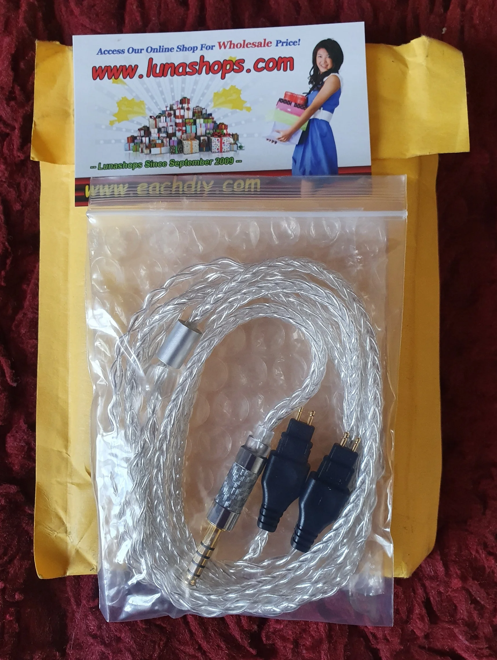 Как в описании. Кабель отлично работает с Fiio M11 на сбалансированном выходе, звук намного лучше, чем оригинальный. Прибыл быстро в мою страну, но по вине румынской почты потребовался еще 1,5 месяца, чтобы отправить посылку к моей двери. Оба штифта черные, но с маркировкой R и L. Настоятельно рекомендую.