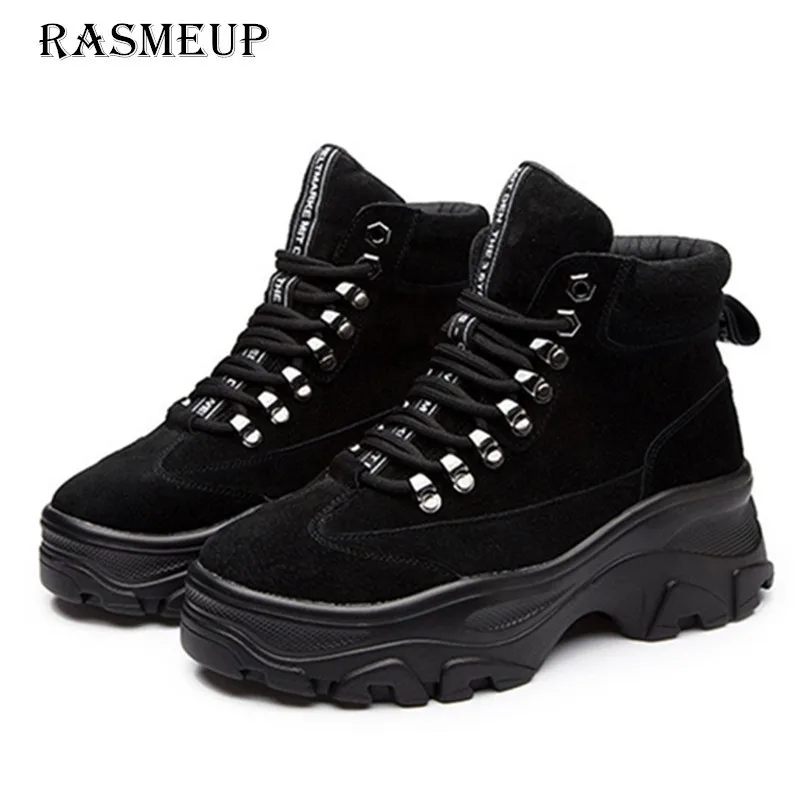 RASMEUP женские ботинки большого размера из натуральной кожи зимние Плюшевые Теплые ботильоны для женщин 2020 модная женская обувь на платформе