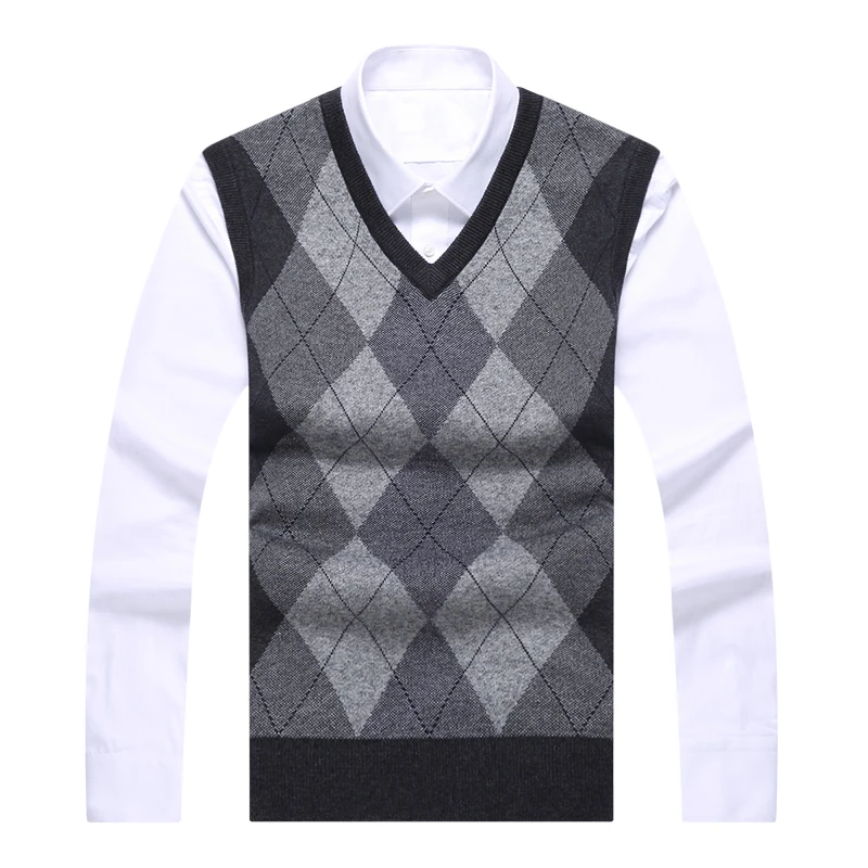 Мужской облегающий свитер, трикотажный джемпер в клетку, жилет в Корейском стиле, повседневная одежда для осени, 2021