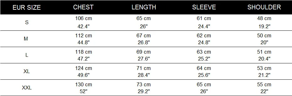 Мы используем европейский размер,Если вы не уверены в размере(См. Отзывы покупателей)Пожалуйста, сообщите нам рост/вес/грудь/рукав/плечо.