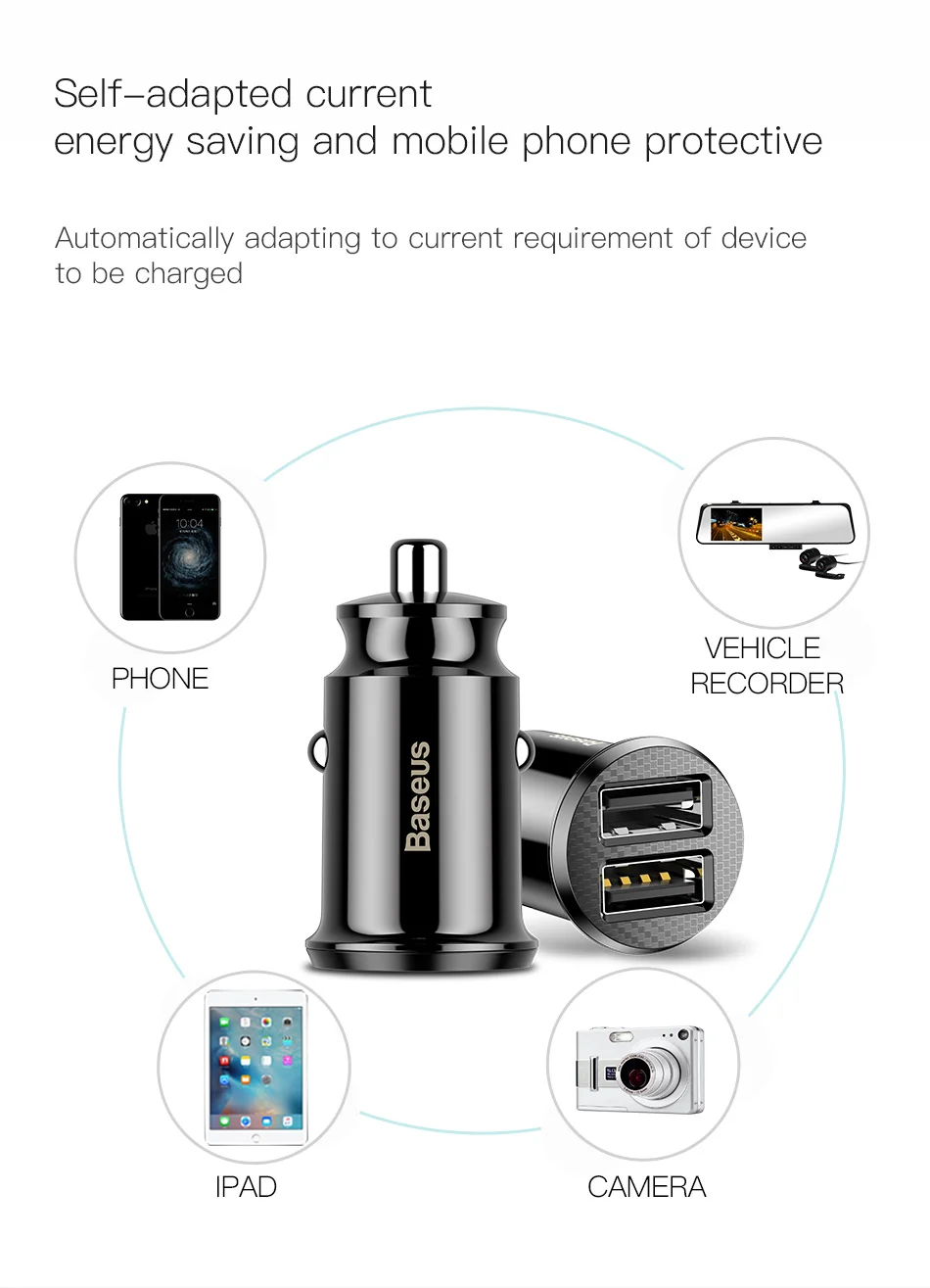 Автомобильное зарядное устройство Baseus, мини-адаптер для быстрой зарядки с двумя автомобильное usb-устройство для зарядки телефона, 3,1 А, для Мобильный телефон, планшета, GPS