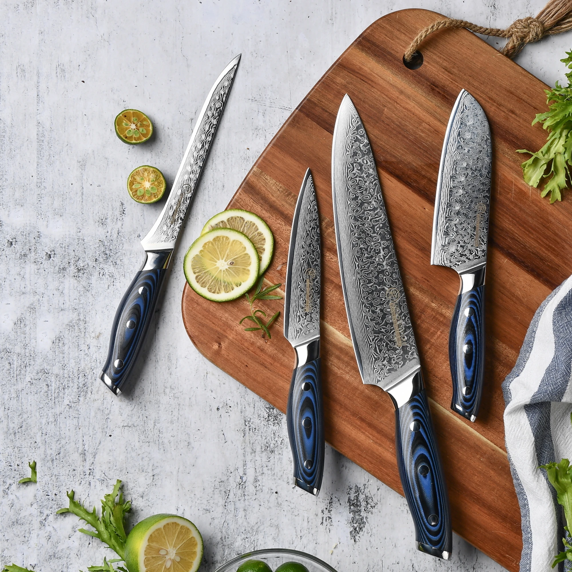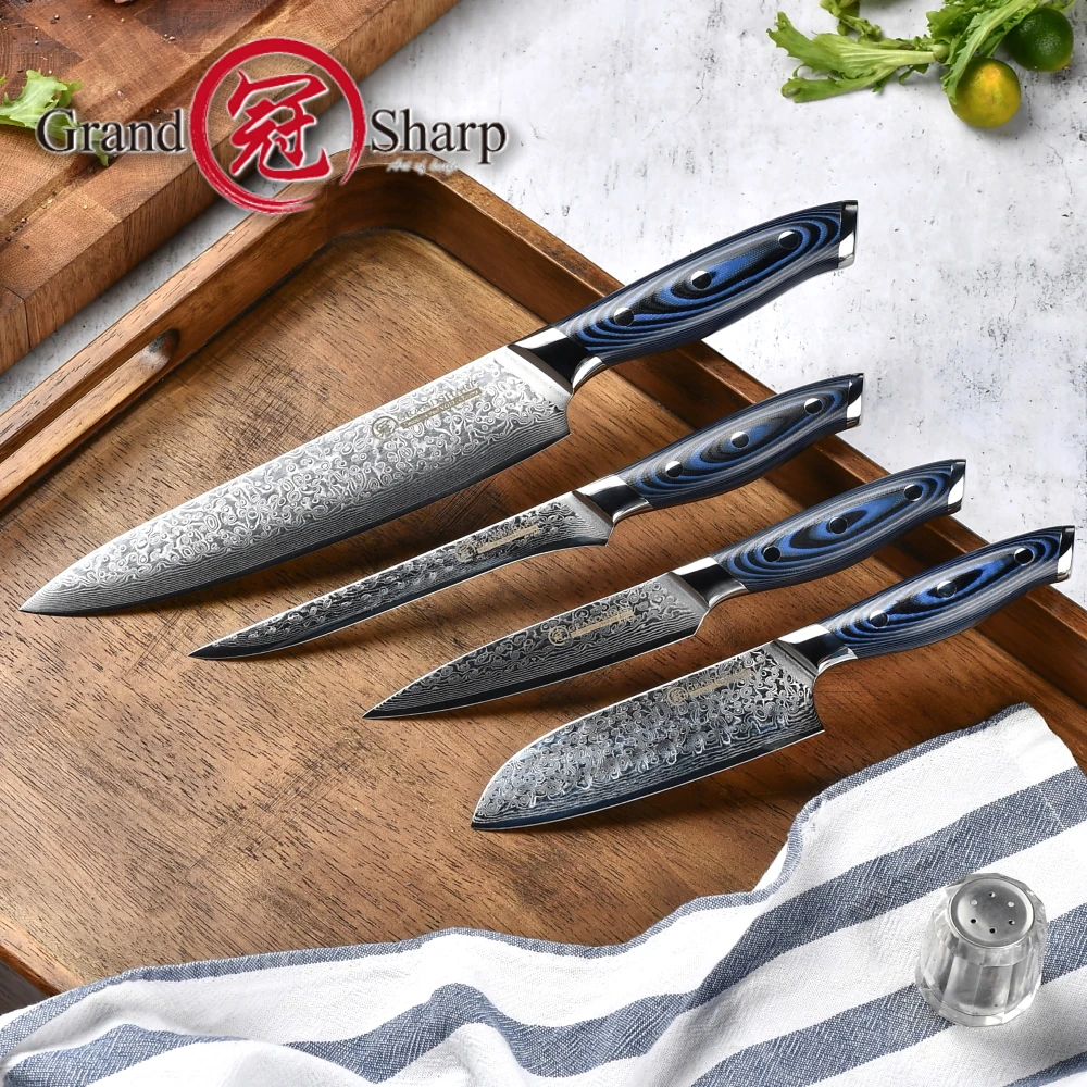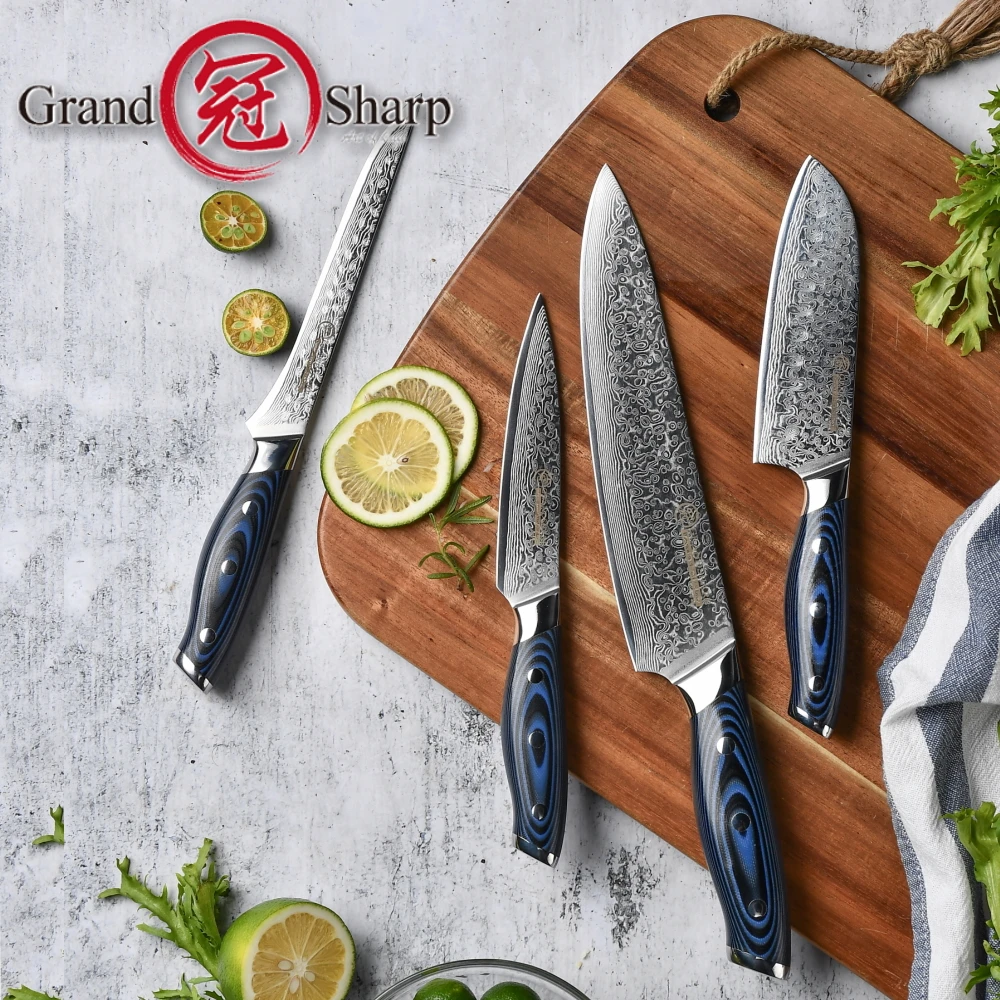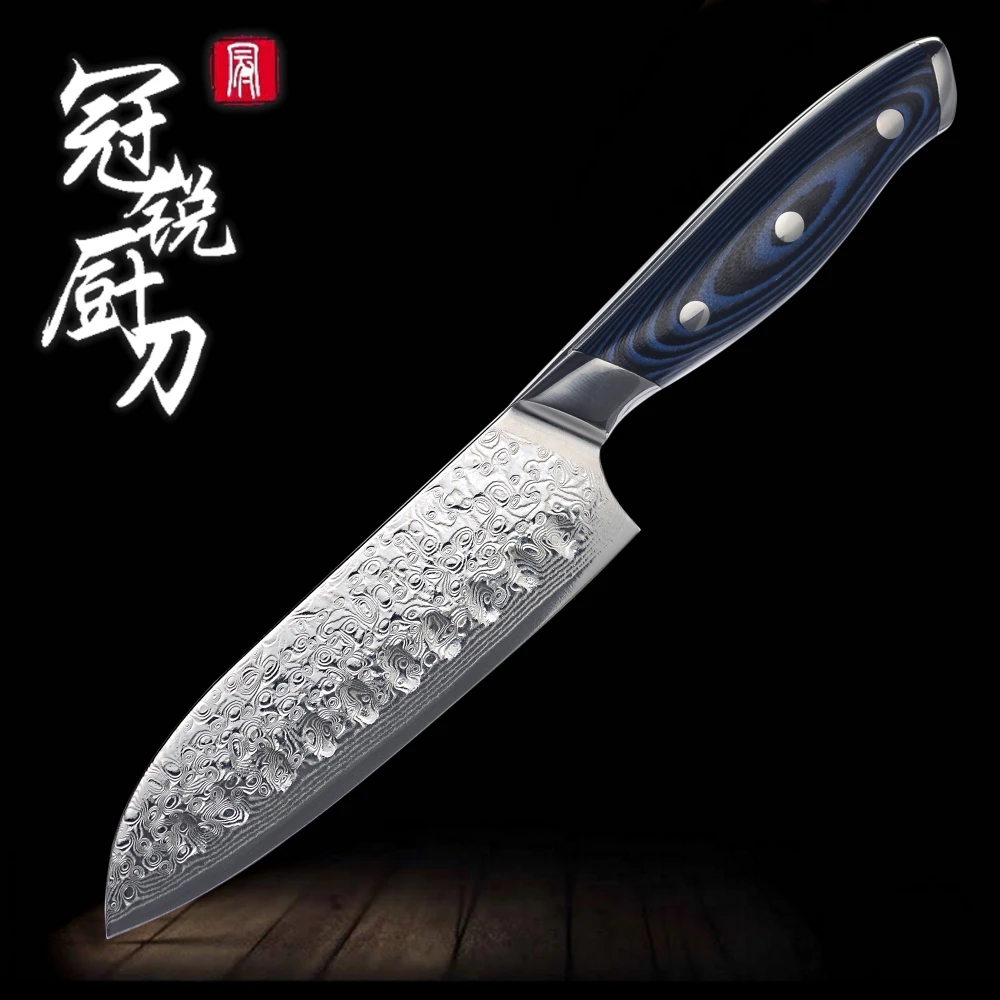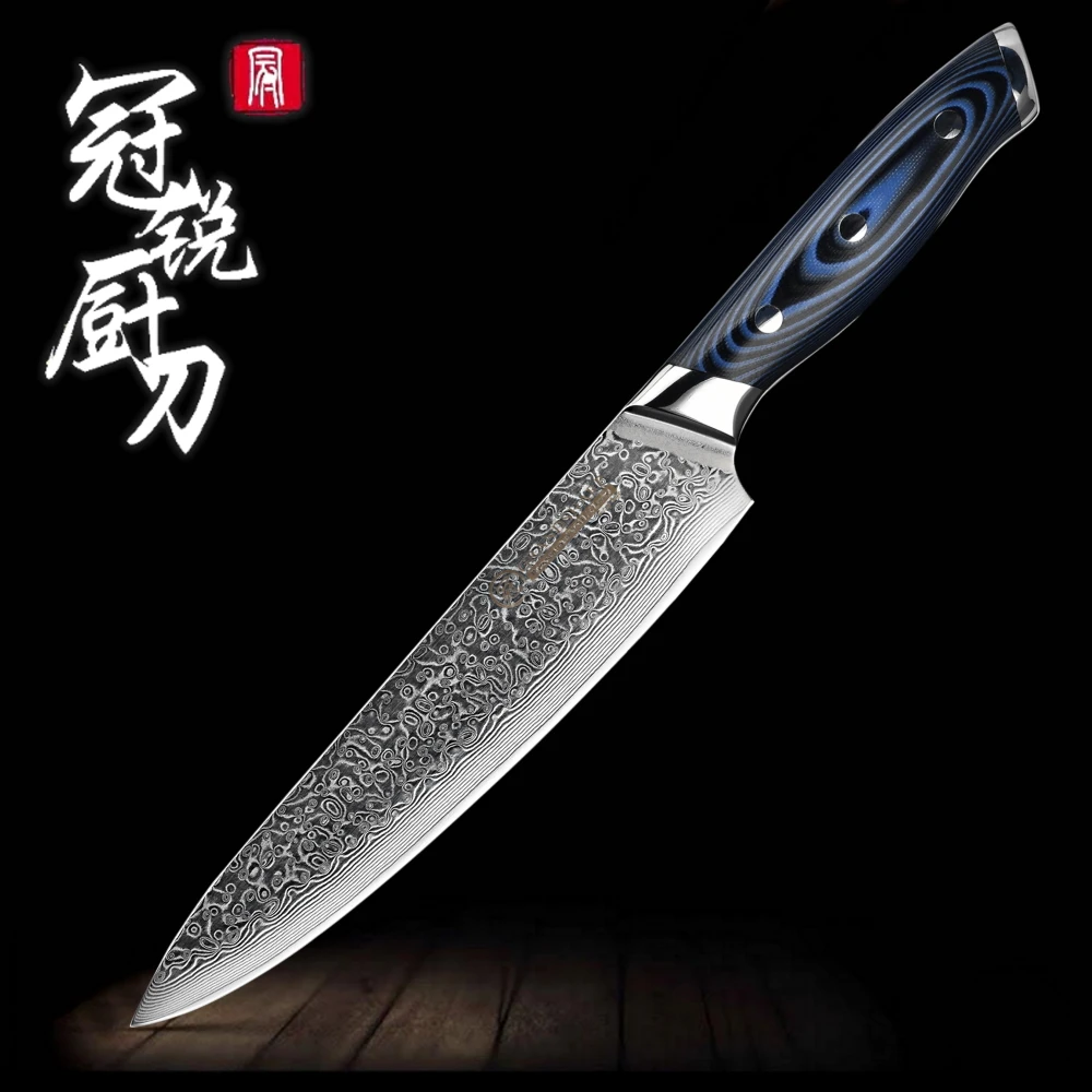 Ножи шеф-повара из дамасской стали vg10, японский кухонный нож из дамасской нержавеющей стали, синяя Ручка G10, профессиональные кухонные инструменты, подарочная коробка