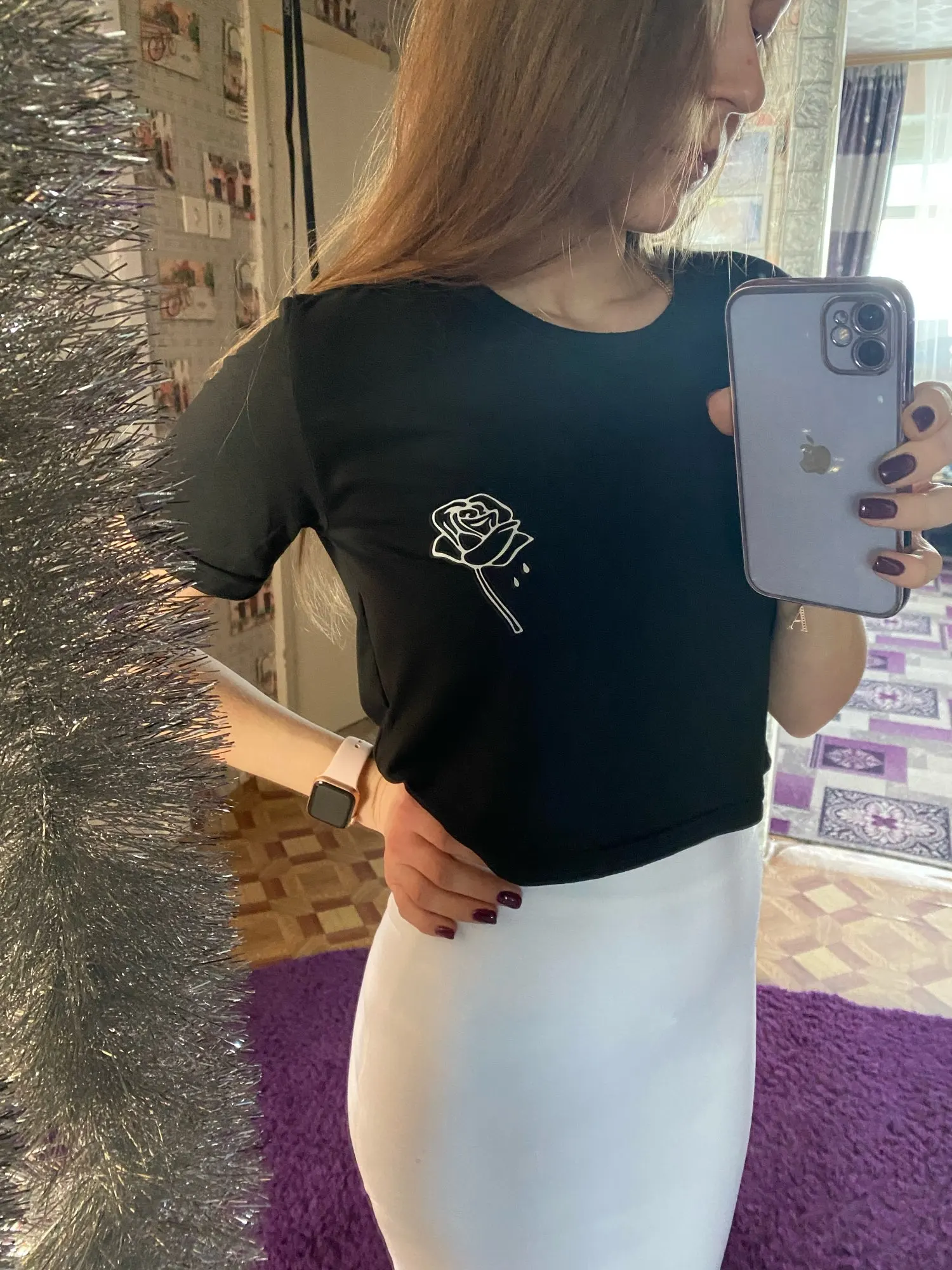 футболка очень тянется, ребенку понравилась. девочка13 лет рост 152 взяли s. смотрится, как на модели