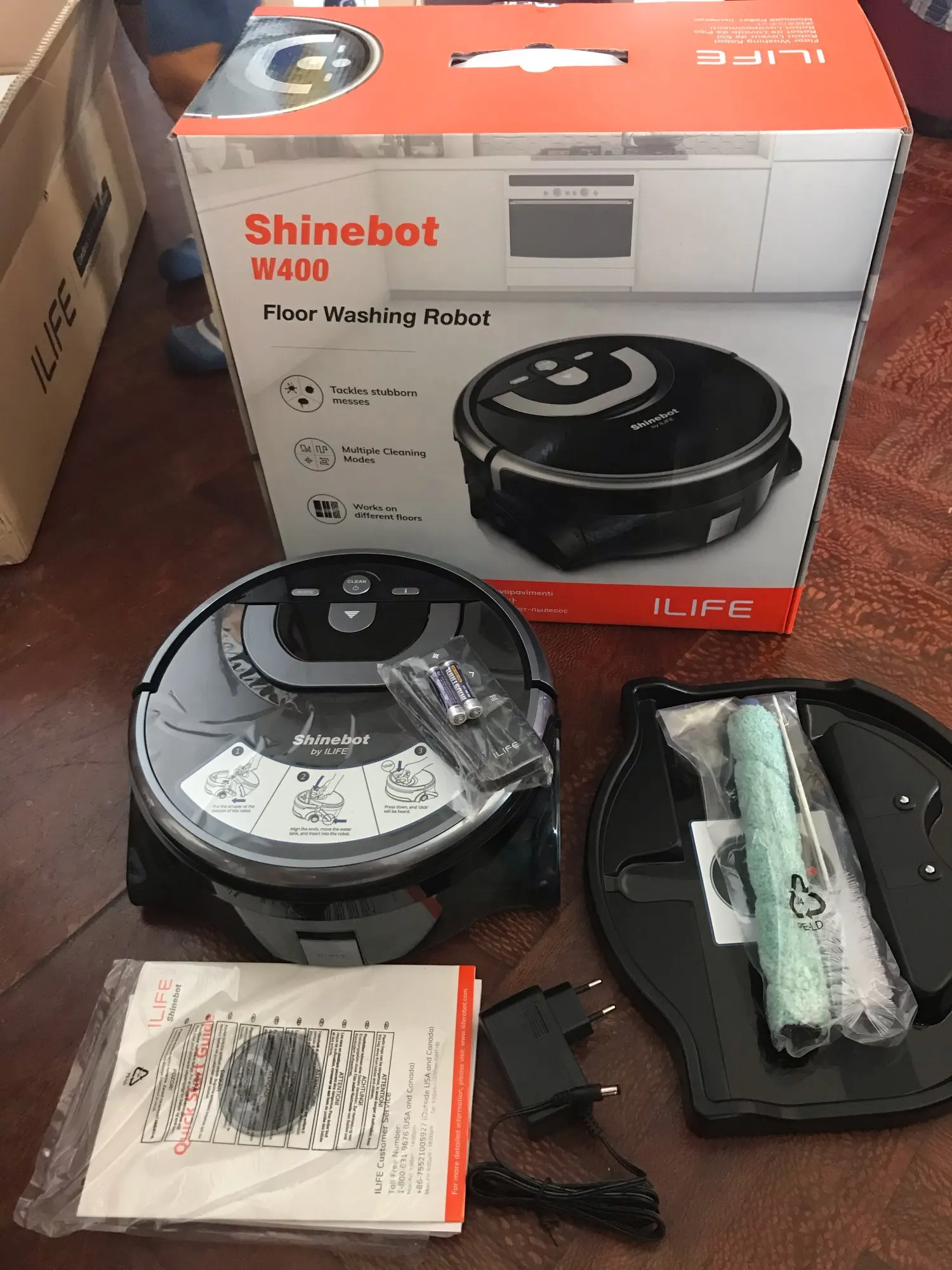 я очень доволен покупкой . это моющий робот . он отмыл засохшее пятно от компота с линолеума это мой первый робот . порадовала 1 цена 2 доставка продавец молодец . я желаю ему хороших продаж продавец отправляет качественный товар по приятной цене . а кто воняет что дорого сравните цены с другими магазинами . попробуйте нейти I LIVE W400 дешевле . всё работает я в восторге .