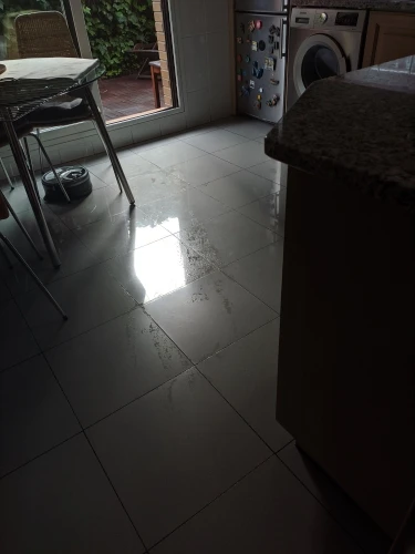 Сначала полотёр оставлял лужи воды на полу. Написала продавцу, и мне ответил инженер. Нужно было положить бумагу в месте крепления скребка, чтобы он опустился ниже. Так что если у кого-то такая проблема, то её можно легко устранить. Теперь полотёр работает хорошо. Плитку моет до блеска. Чистящее средство не добавляла, моет водой из фильтра.