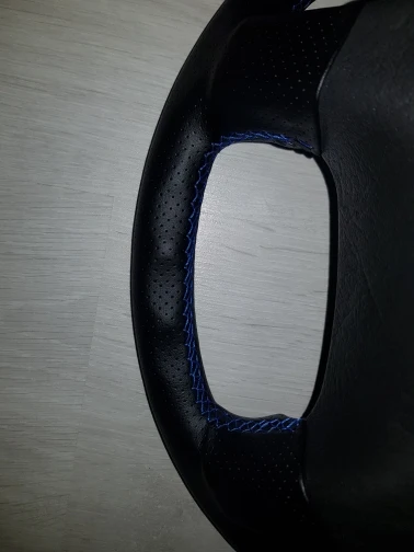 Сшитый вручную черный чехол рулевого колеса автомобиля из искусстве...