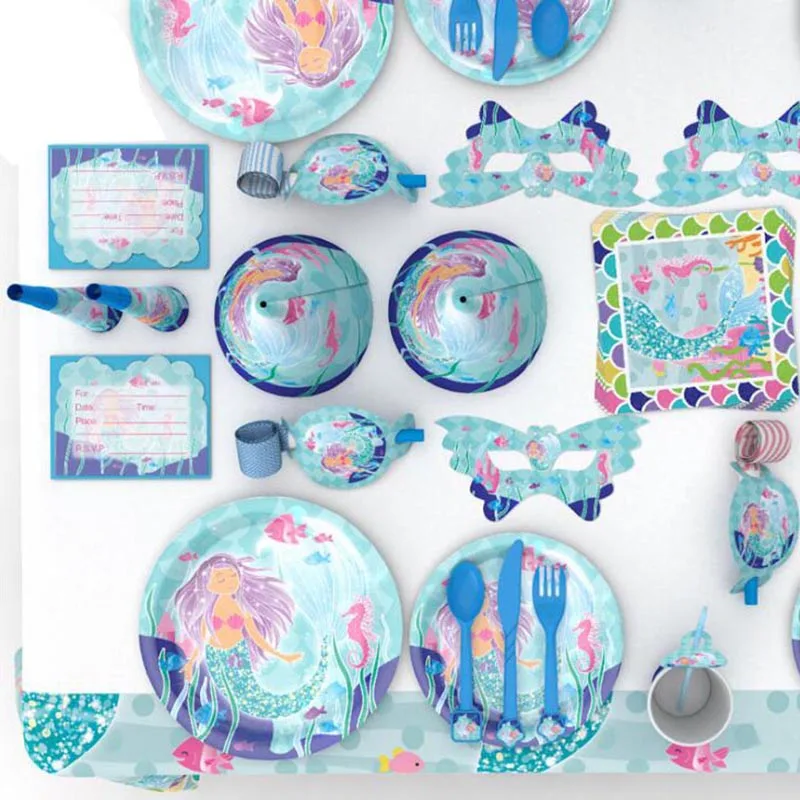 Одноразовые столовые приборы для дня рождения для детей от 8 до 30 лет, вечерние тарелки с животным и единорогом в виде русалки, детские принадлежности для дня рождения