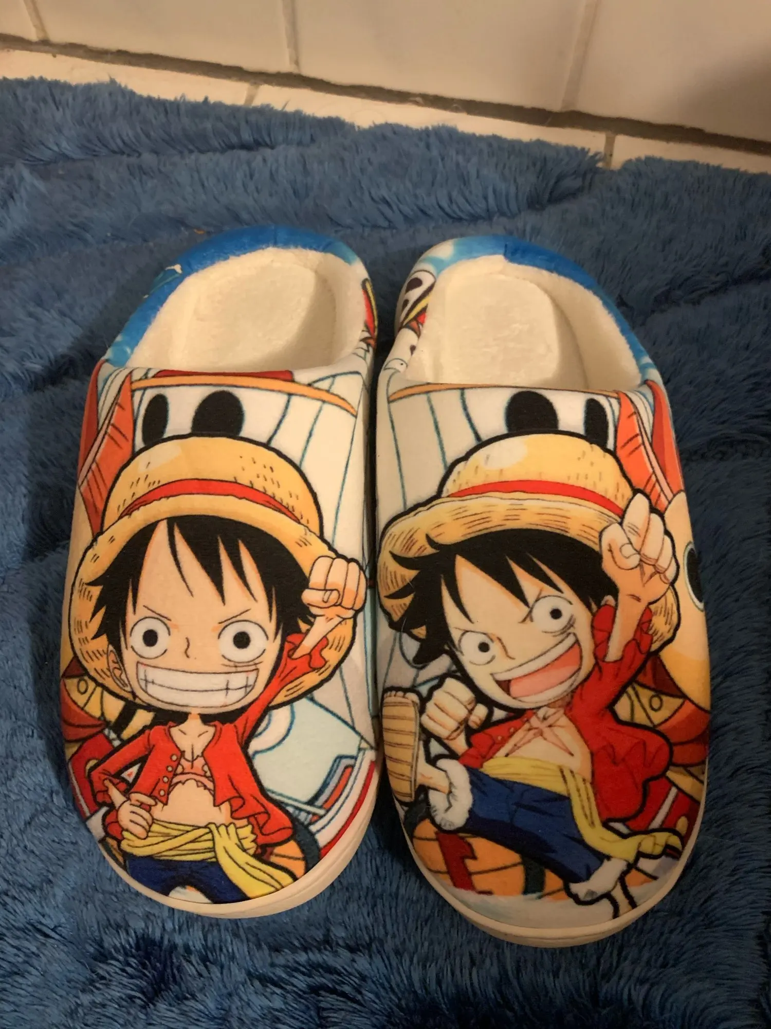 2018 японское аниме цельное обезьянка D Луффи зимние теплые плюшевые мужские и женские тапочки домашние плюшевые Тапочки