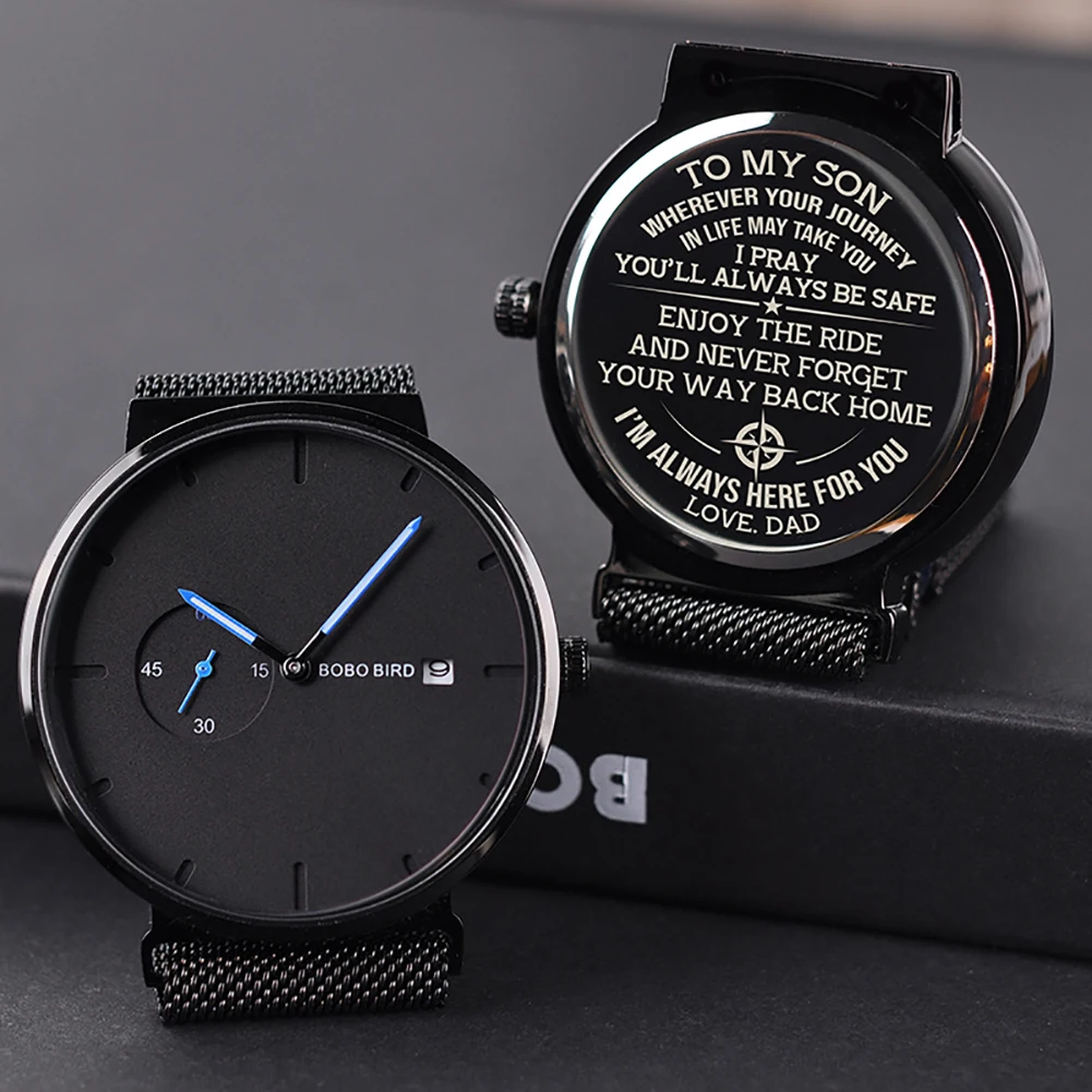 Персонализированные часы BOBO BIRD, мужские кварцевые часы из нержа...