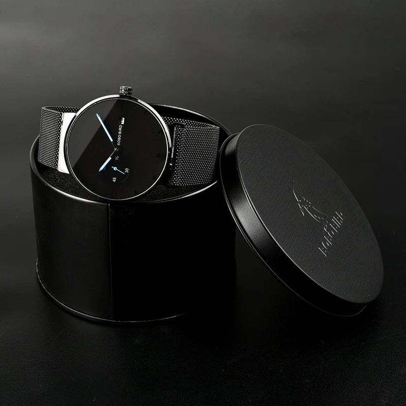 Роскошные мужские часы BOBO BIRD, минималистичный черный дизайн, се...