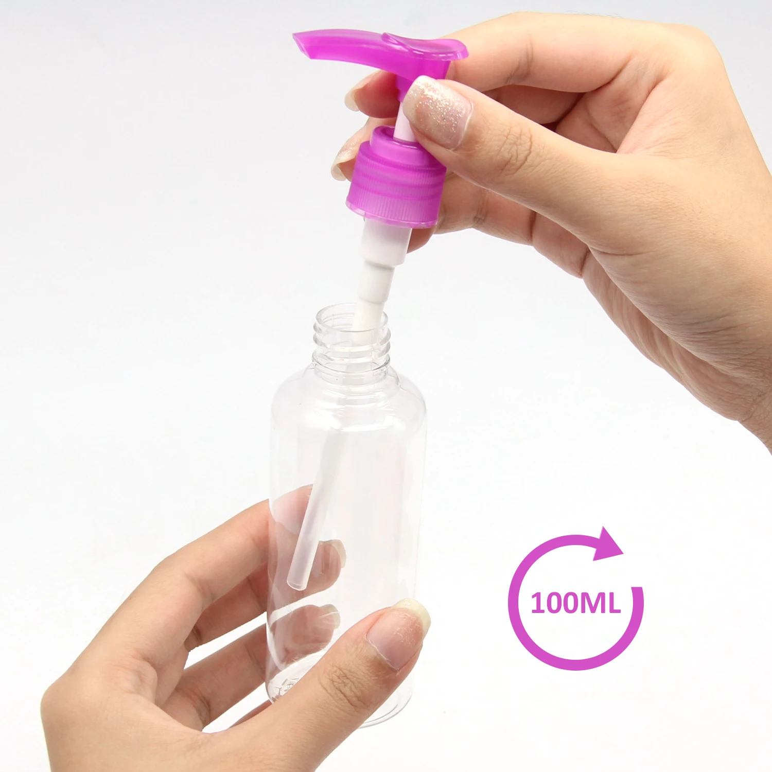4 шт. 100 мл пустой многоразовый пластиковый дорожный лосьон, шампунь, массажный дозирующий насос диспенсер для бутылки, случайный цвет