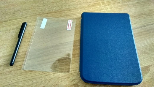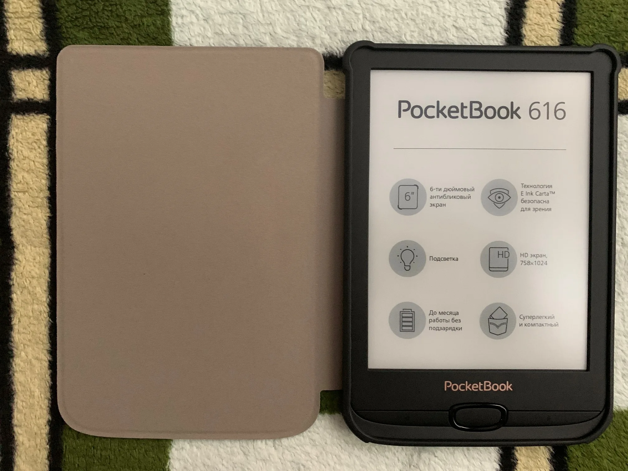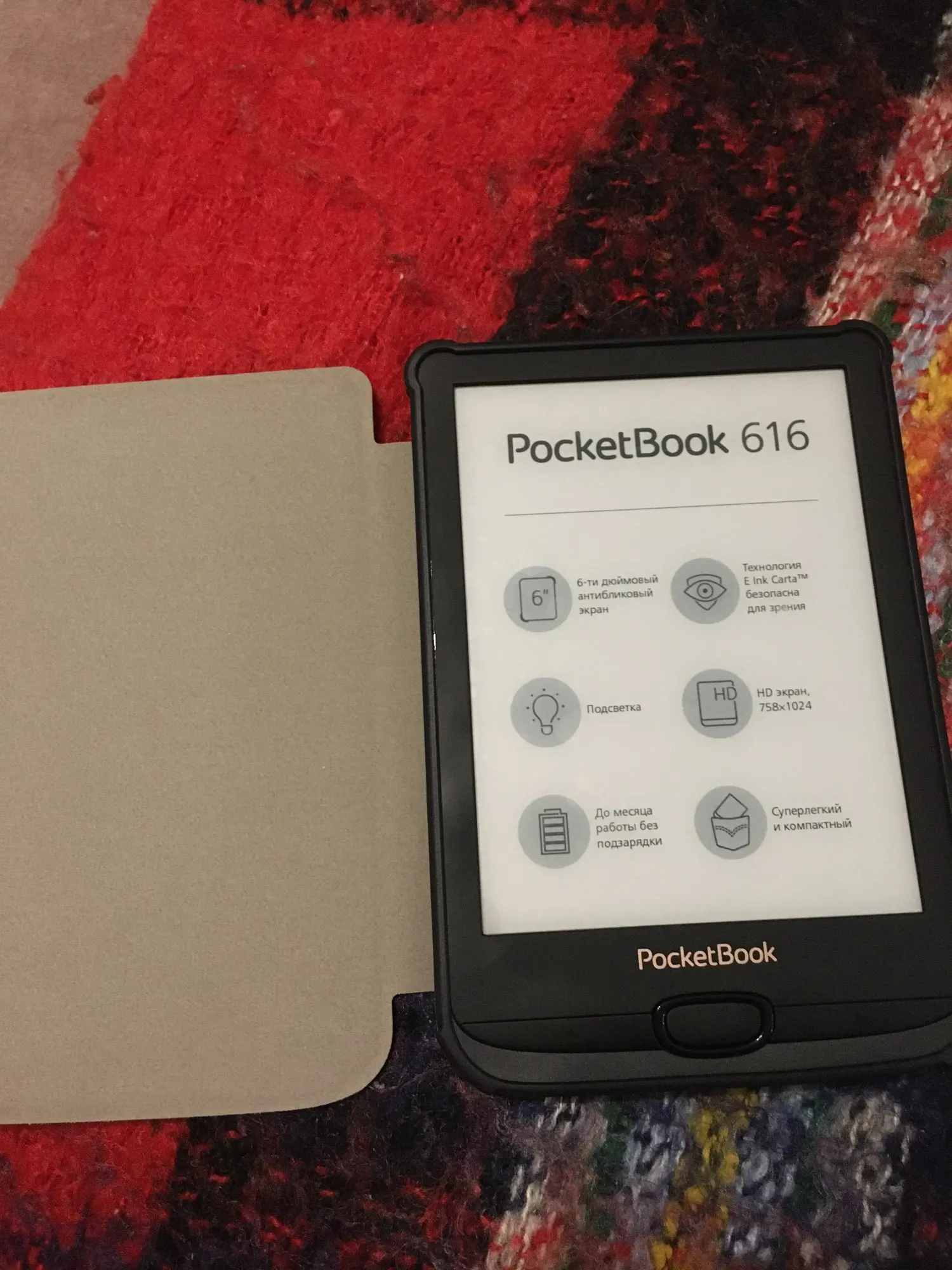 На pocketbook 616 села четко. Качество хорошее. В комплекте идёт пленка на экран и стилус. Основание резиновое, а крышка из более твёрдого материала. При закрытии крышки книга засыпает. До Краснодара дошло за 17дней, отслеживалась.