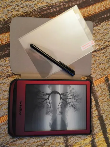 Чехол красивый и качественный. В комплекте идёт Стилуса и защитная плёнка на экран. Идеально подошёл на Pocket Book Lux 4