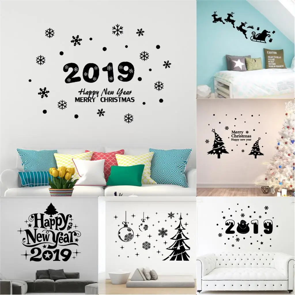 Новинка 2019, Новогодняя Наклейка на стену, домашний декор для гостиной, Настенный декор, аксессуары для украшения дома