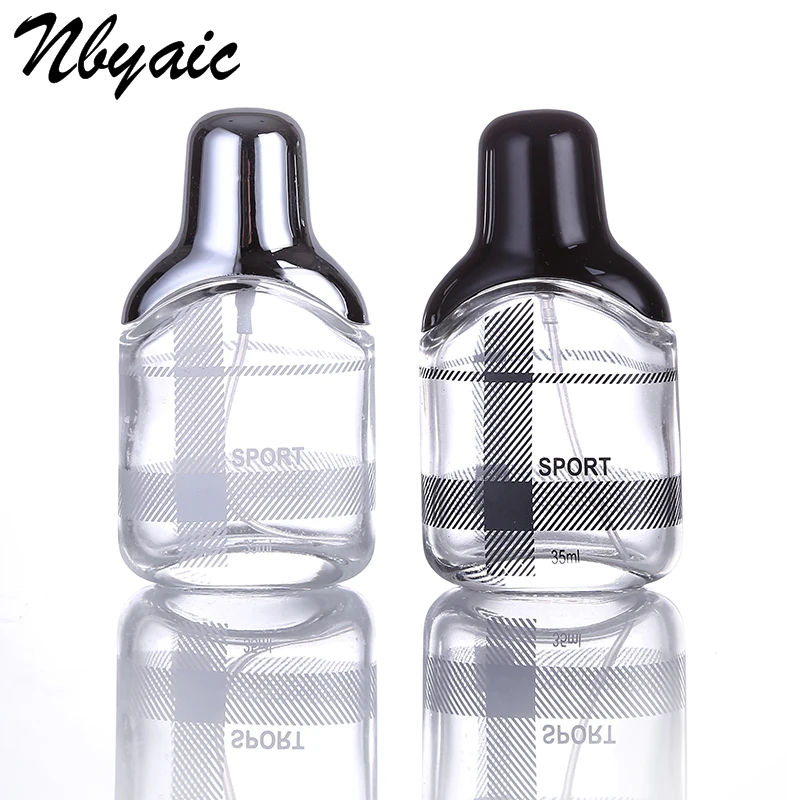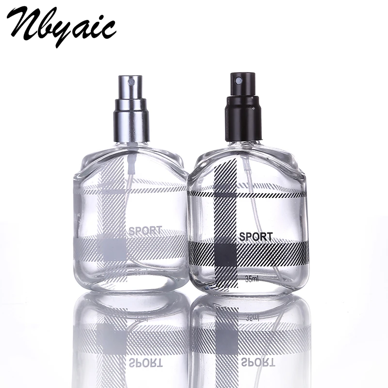 Nbyaic 1 шт. 35 мл черная серебряная стеклянная Косметическая бутыль с распылителем, пустая бутылка, портативная дорожная бутылка