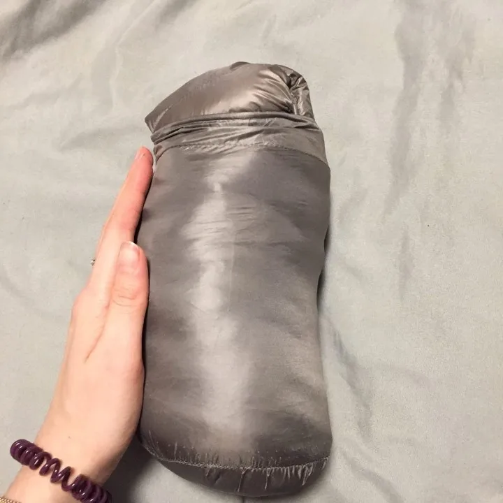 есть торчащие нитки, нет сумочки((( размер эль на 44 размер маловат, нужно было иксэкль заказывать. вообщем, расстроена(( конечно не уникло, пуха крайне мало. не советую в целом.