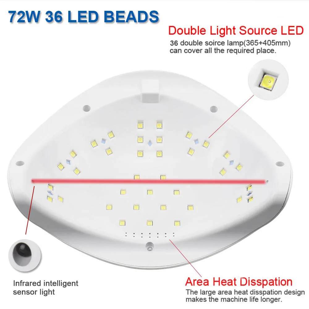 УФ-лампа для сушки ногтей New5 PRO, 72 Вт, 36 светодиодов