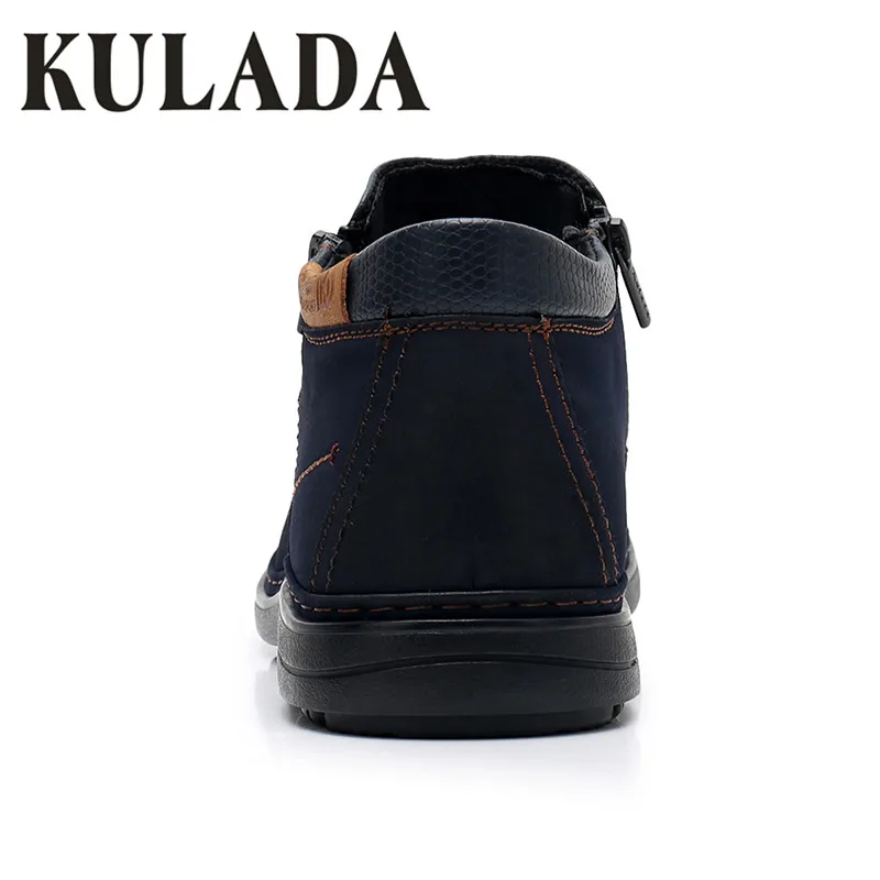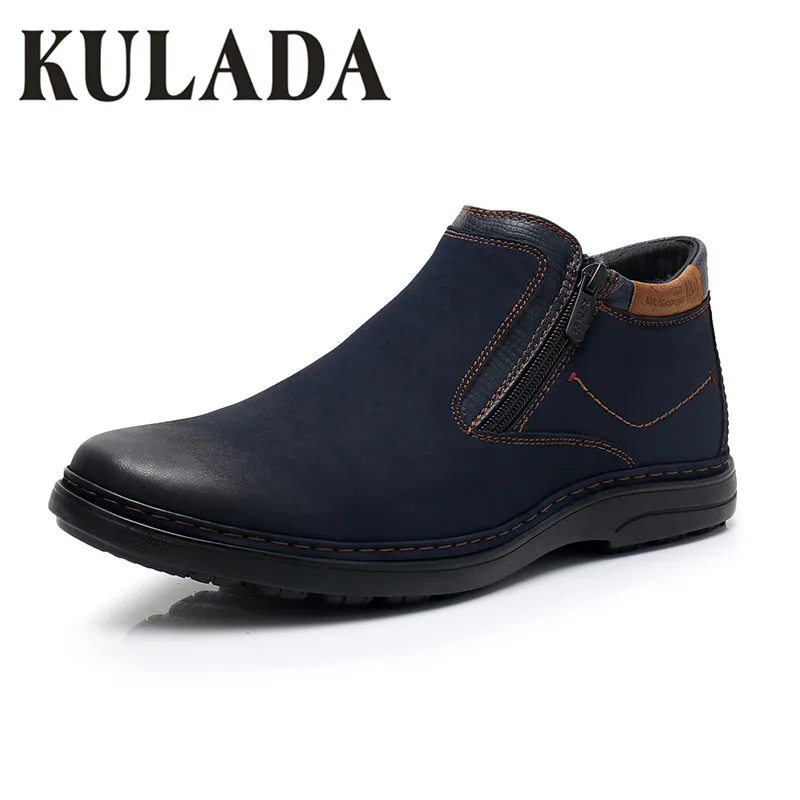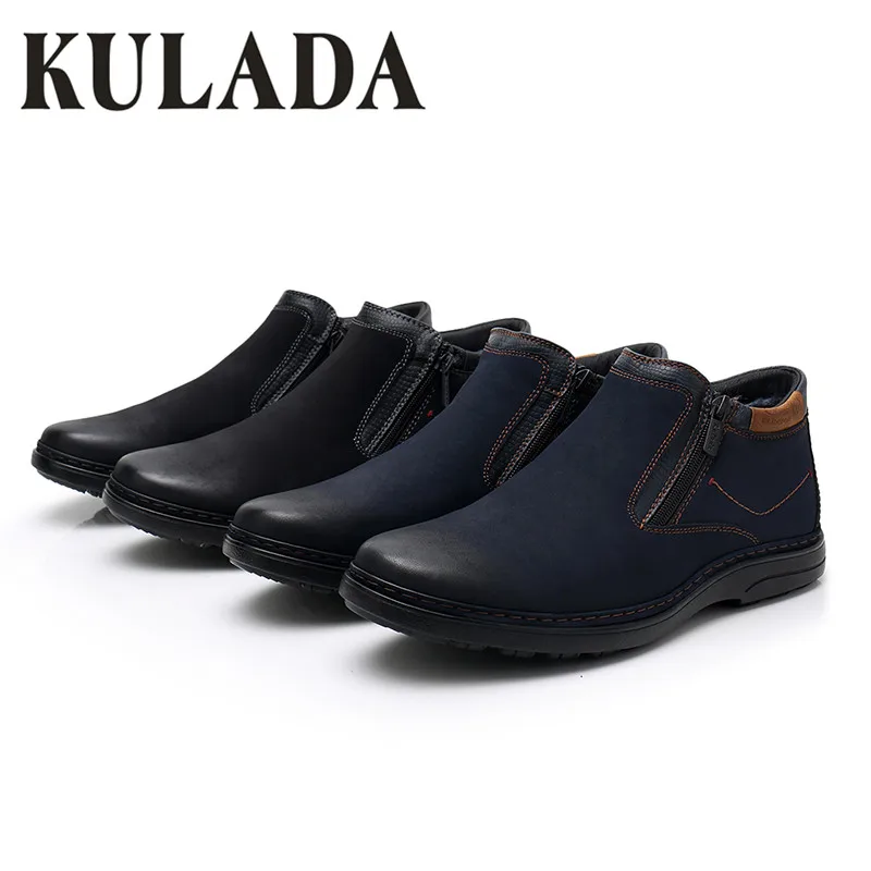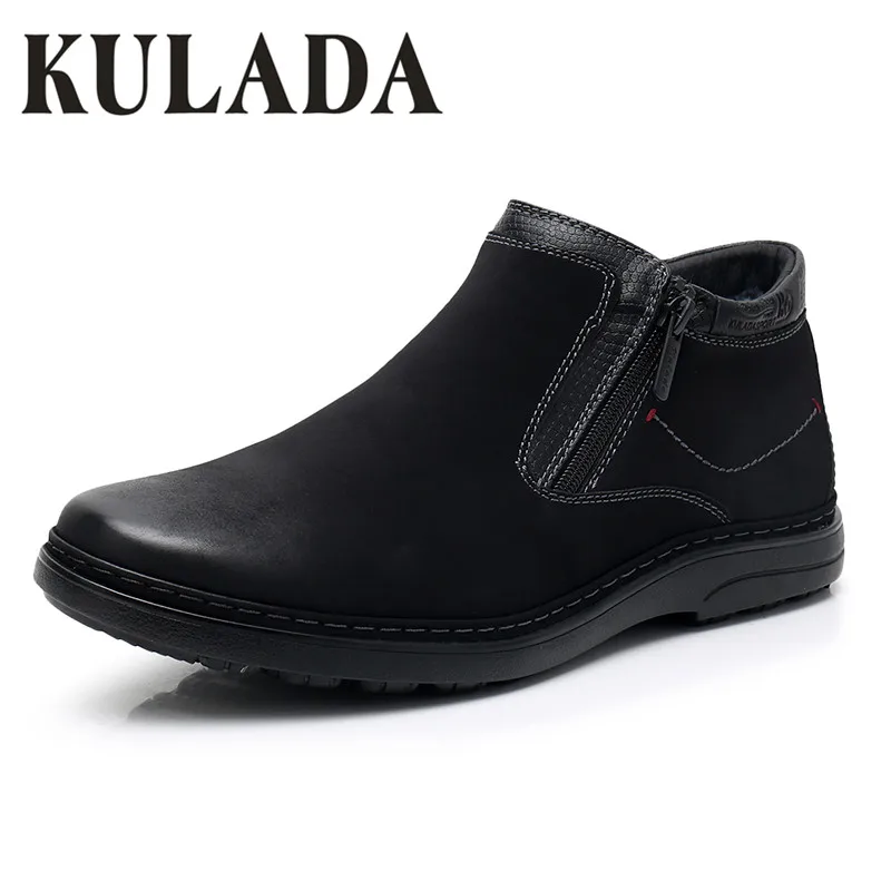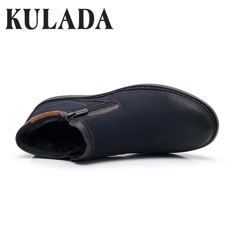 KULADAмужские ботинки; мужская теплая зимняя обувь на толстом меху; удобные зимние ботинки из коровьей замши на молнии сбоку; мужские повседневные ботинки
