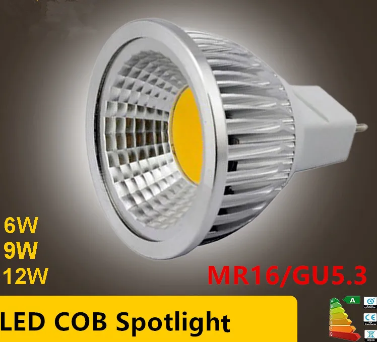 Новый высокомощный лампада СИД MR16 GU5.3 COB 6w 9w 12w Диммируемый СИД Cob прожектор Теплый Холодный белый MR 16 12V лампа GU 5,3 220V