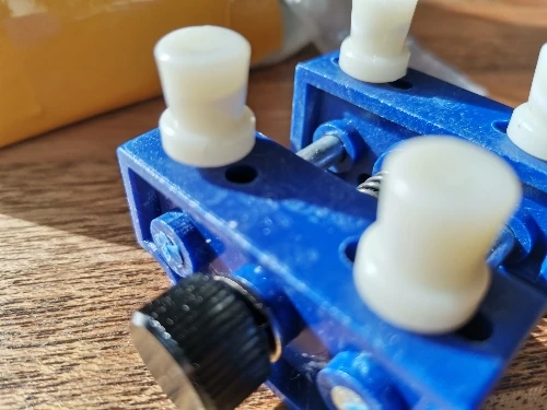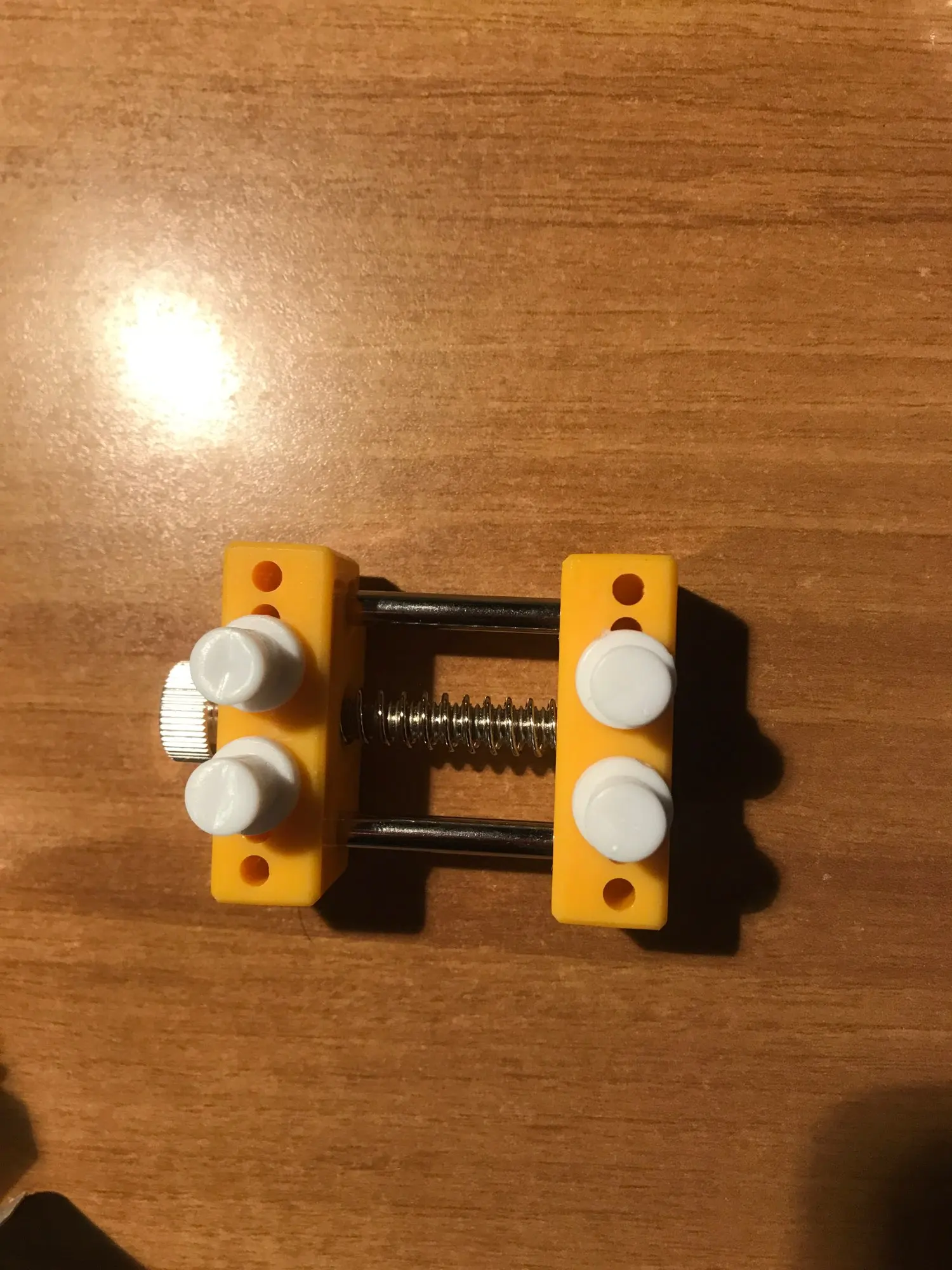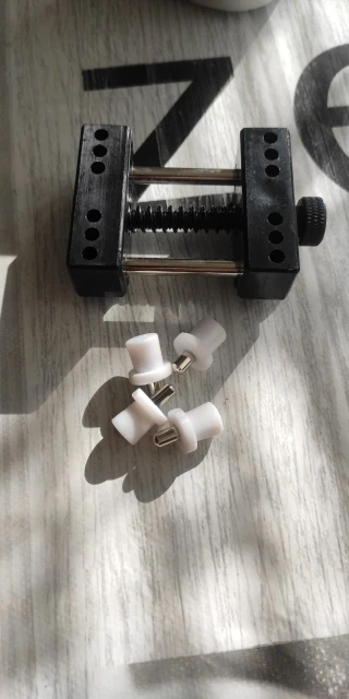 Направляющие стержни и Алюминиевый винт, остальное в пластике. Слабая часть может быть пластиковая нить, которая выполняет функцию гайки. Увидимся со временем...