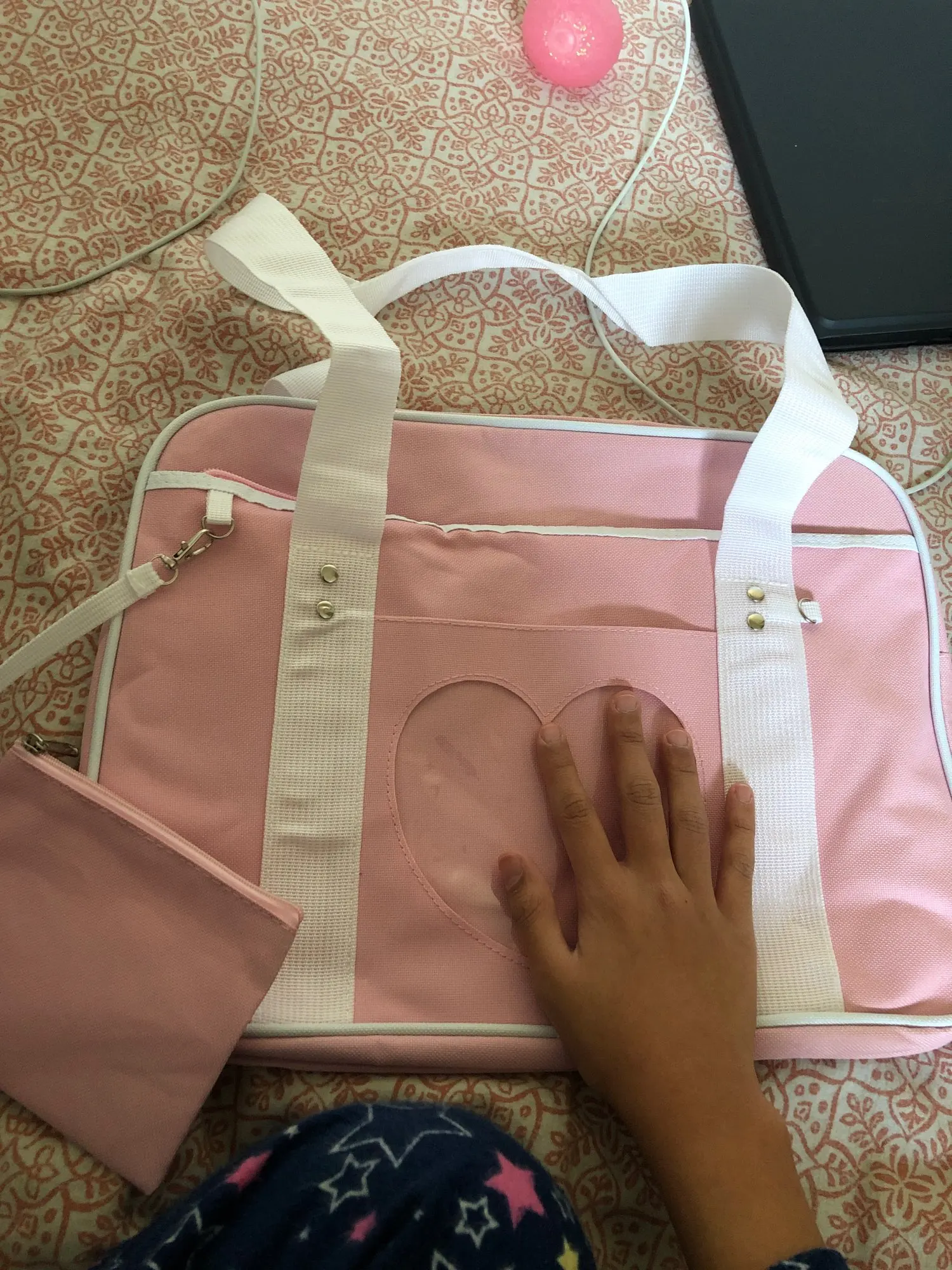 хорошая сумочка дочке в школу. спасибо большое продавцу. пришла очень быстро.